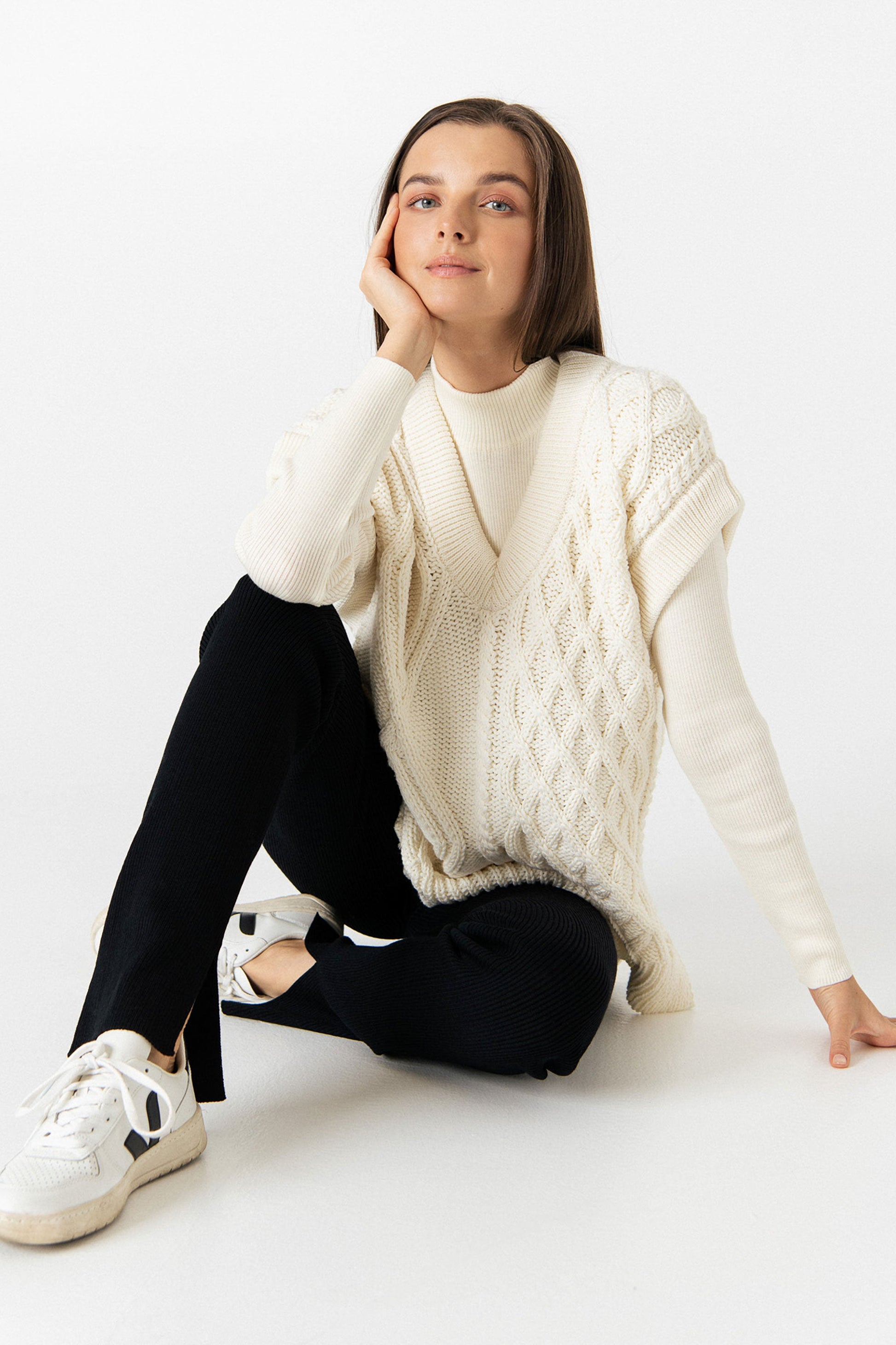 Diese Leggings im Rippenstrick-Stil zum Hineinschlüpfen mit geteiltem Saum sitzen dank des verstellbaren Gummibands bequem in der Taille und sorgen so für eine individuelle Passform. Ja, genau wie bei Kinderkleidung! Bei unseren Kundinnen hat es super funktioniert. Wir haben sie an einigen Freundinnen mit unterschiedlichen Körperformen und -größen ausprobiert – alle waren sich einig, dass die Passform selbst während der Schwangerschaft perfekt passt!Tragen Sie sie zusammen mit Ihren Lieblingshemden, Blazern oder übergroßen Pullovern.