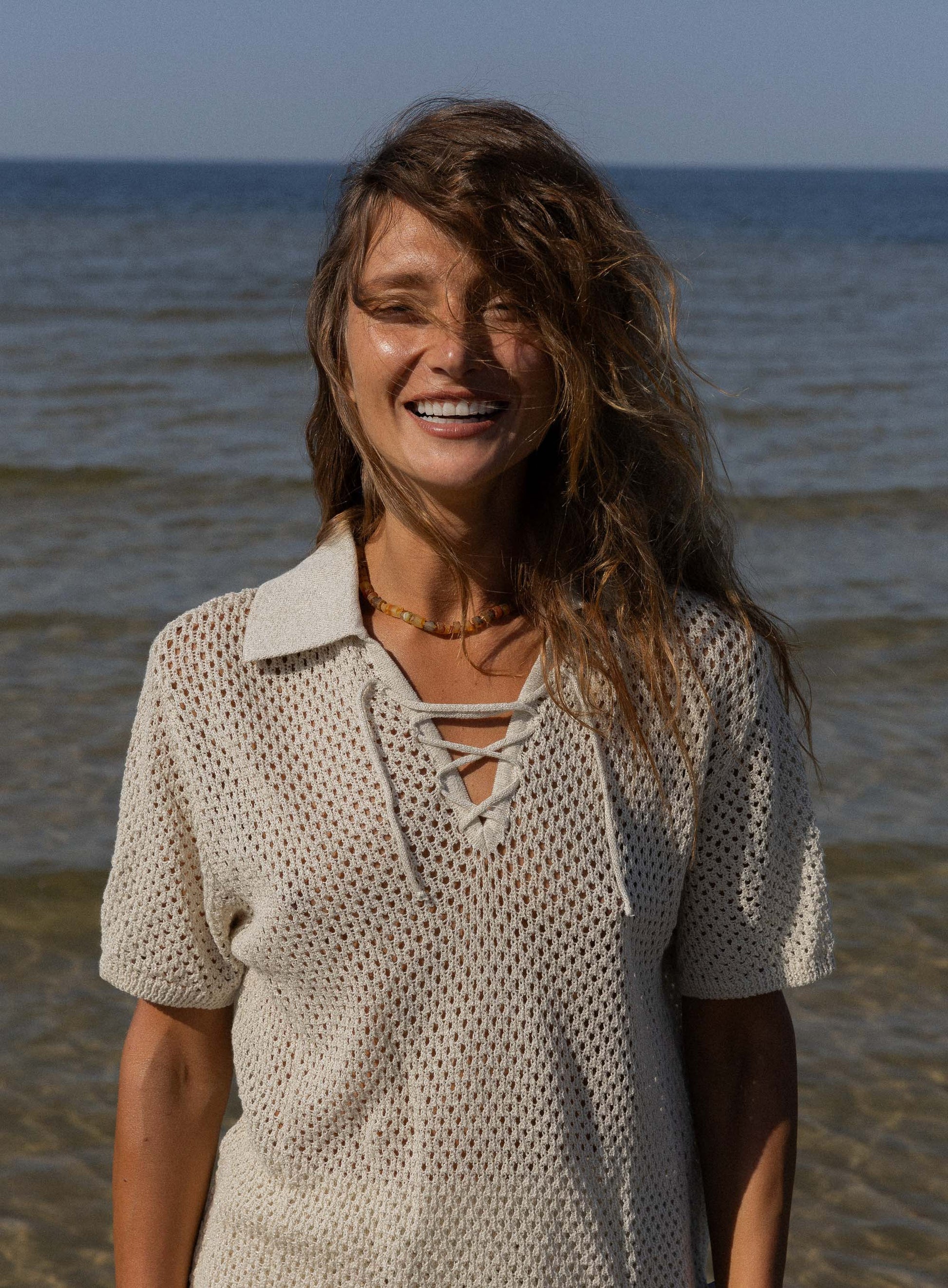 Das Coco Sommerset ist aus einem luftigen, offenen Strick aus Baumwollmischgarn gefertigt und mit dezenten Pailletten verziert, die das Sonnenlicht reflektieren – das macht dieses Set zu einem wahren Tragevergnügen. Der Stoff ist leicht transparent und eignet sich daher perfekt zum Überziehen über den Badeanzug.