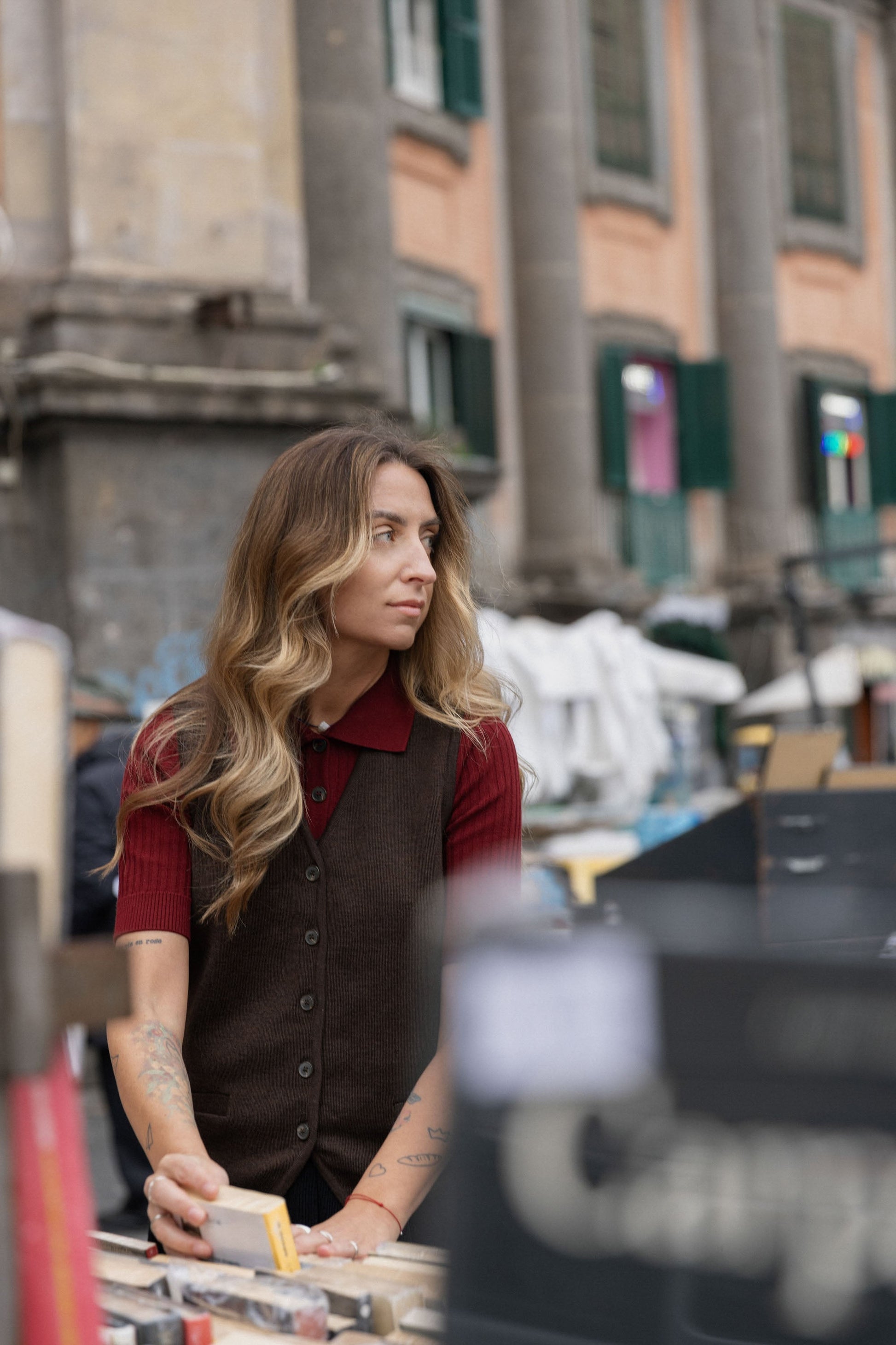 Galante Gestrickte Weste aus 100 % Merinowolle, Schokolade