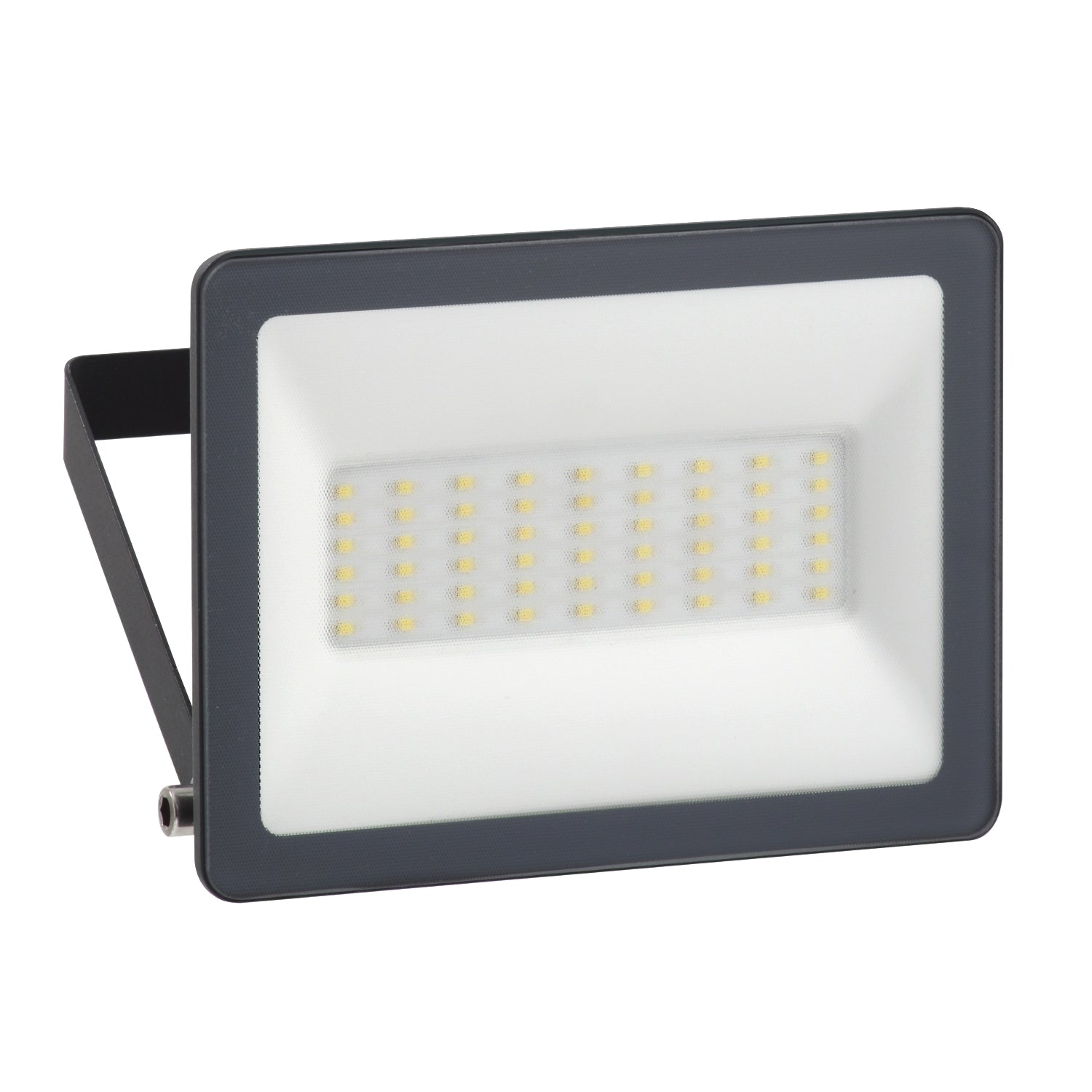 Mureva-Leuchten: LED-Flutlicht mit modernster LED-Technologie und Infrarotsensor für eine Energieeffizienz von bis zu 100 lm/W. Hohe Lichtqualität mit 5000 lm Lichtstrom, 6500 K Farbtemperatur und einer langen Lebensdauer von 50000 Stunden ohne Erwärmung. Kompaktes Produkt mit einem Abstrahlwinkel von 110 Grad, rechteckiger Form (Höhe 189,4 mm, Breite 201,4 mm, Tiefe 26,5 mm) und einem Gewicht von 1,06 kg. Dank der hohen IP-Schutzart IP44 ist es für die Installation bei allen Wetterbedingungen im Innen- und Außenbereich geeignet. Einfache Installation und Montage dank der Halterung. Es kann an allen Arten von Wänden aufgehängt und montiert oder auf einem Stativ verwendet werden. Dieses LED-Flutlicht ist für kostensensible Anwendungen optimiert und gewährleistet ein äußerst wettbewerbsfähiges System-Lumen-pro-Watt-Verhältnis. Es erfüllt die strengen Anforderungen an Effizienz und Zuverlässigkeit moderner Beleuchtungsanwendungen und eignet sich sowohl für gewerbliche als auch für private Beleuchtungsanwendungen.