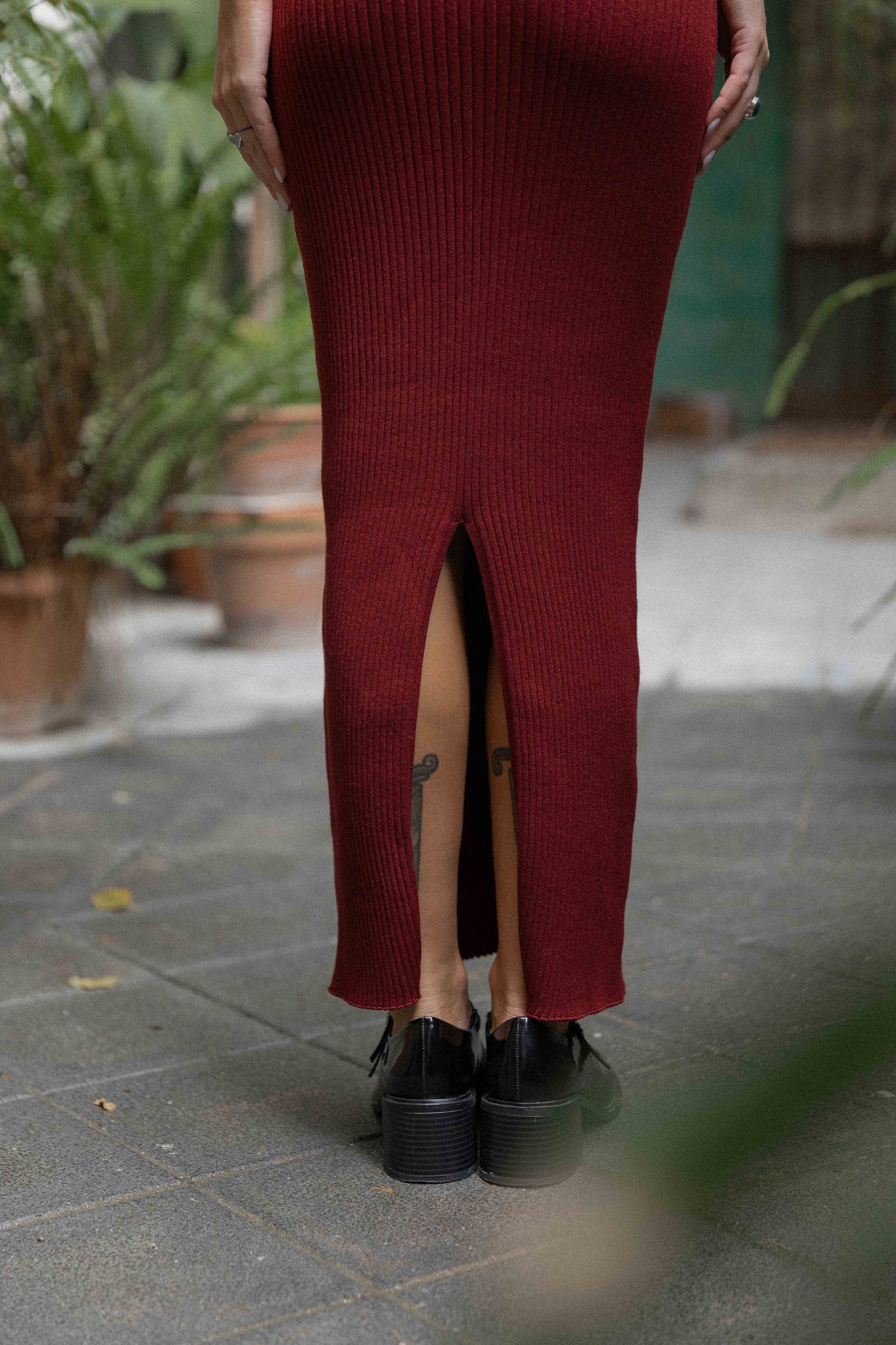 Der Madonna-Rock formt Ihre Silhouette dezent von der hohen Taille bis zum Midi-Saum. Das wendbare Design ermöglicht Ihnen, den 2-in-1-Rock mit tiefem Schlitz vorne oder hinten zu tragen. Er sitzt auf der Taille und wird durch ein verstellbares Gummiband individuell angepasst. Ja, genau wie bei Kinderkleidung! Unsere Kundinnen haben ihn super vertragen. Wir haben ihn an einigen Freundinnen mit unterschiedlichen Körperformen und -größen anprobiert – alle waren sich einig, dass die Passform selbst während der Schwangerschaft perfekt passt!