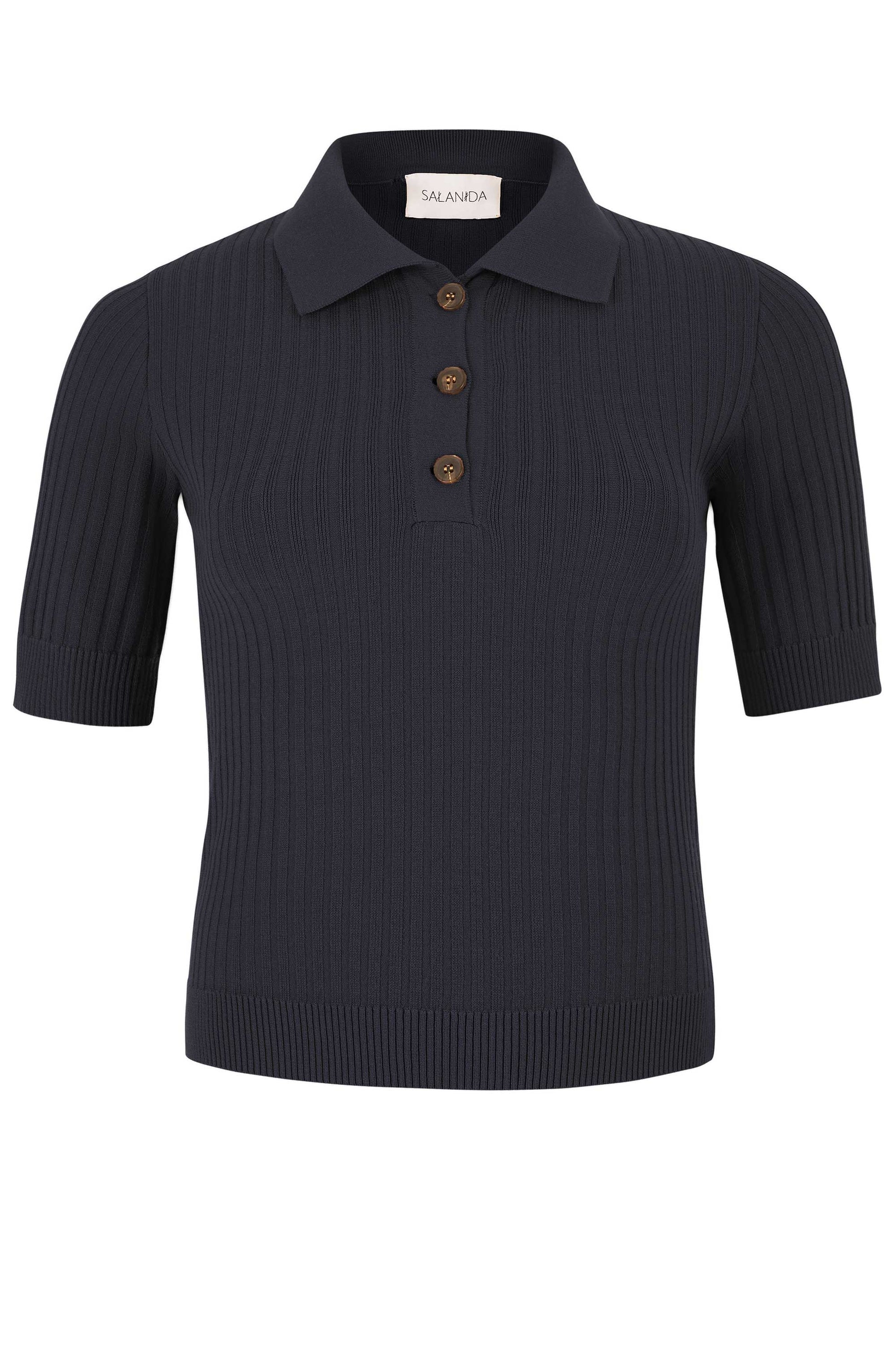 Dezente Eleganz trifft auf Alltagstauglichkeit. Das Poloshirt Madonna hat eine raffinierte Rippenstruktur, kurze Ärmel und einen eleganten Polokragen mit Knöpfen.