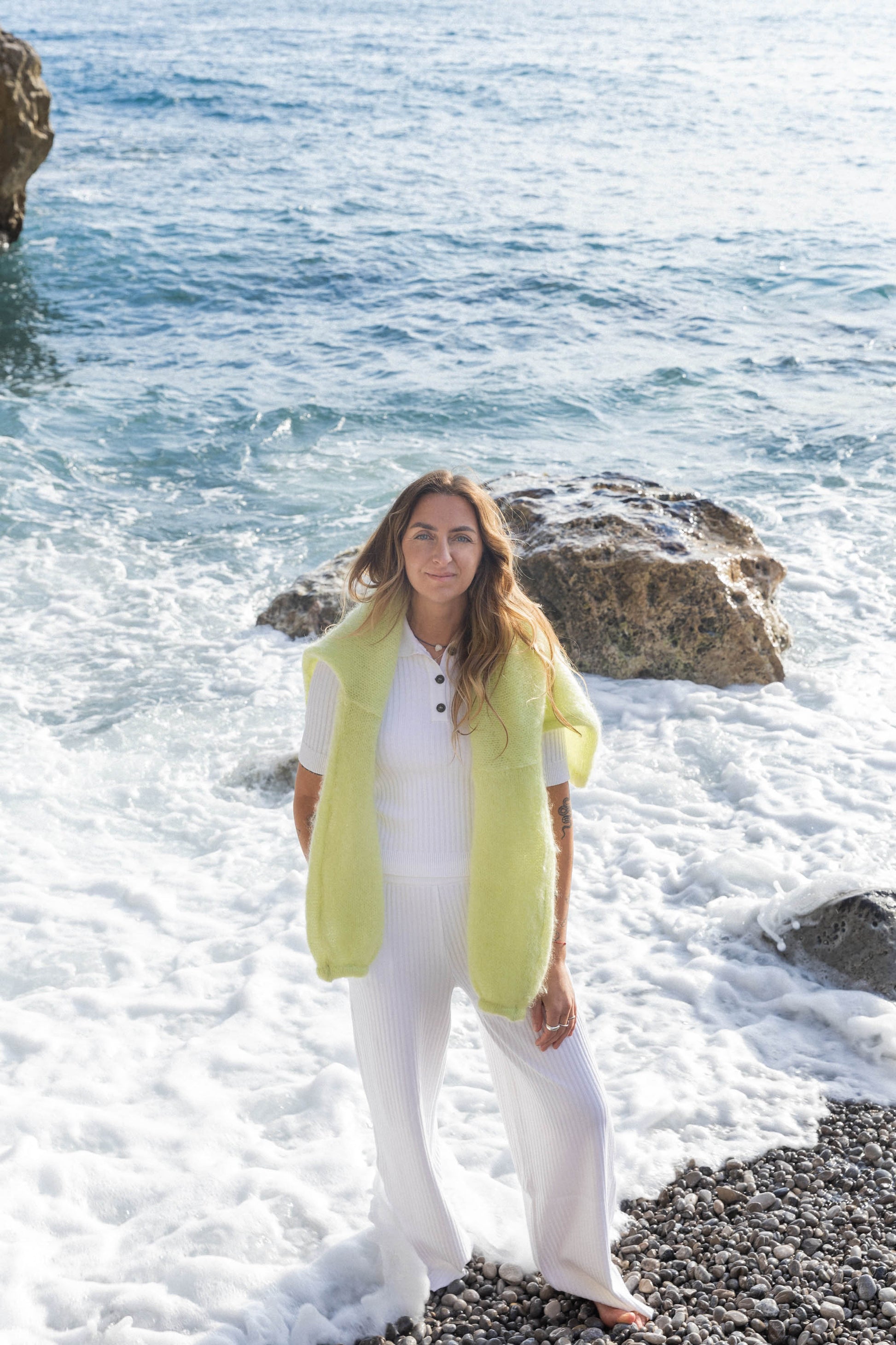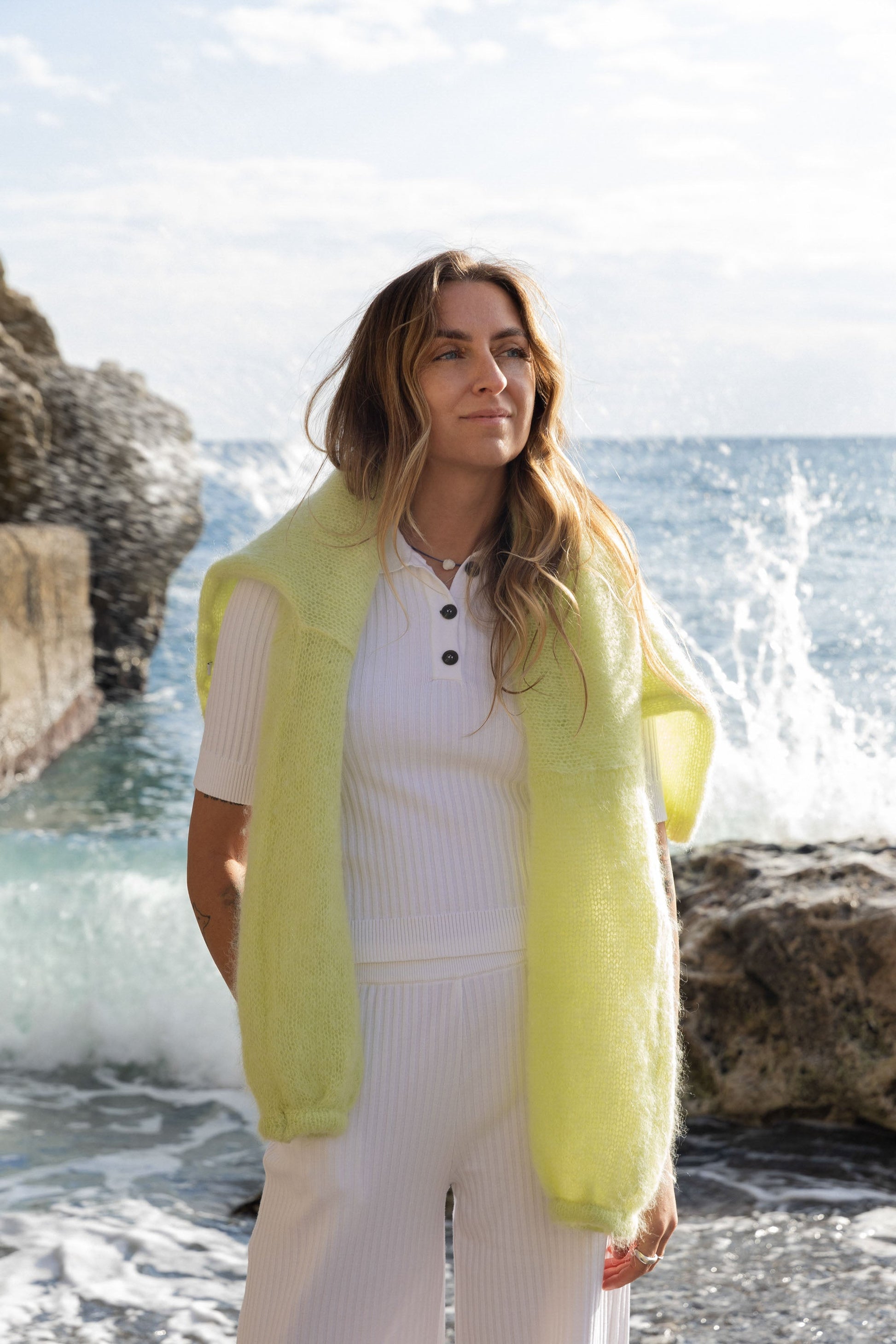 Es ist ein vielseitiges Stück, das Sie allein tragen, mühelos übereinander tragen oder für einen schicken Kombi-Look mit Vera-Hosen oder Madonna-Rock kombinieren können.