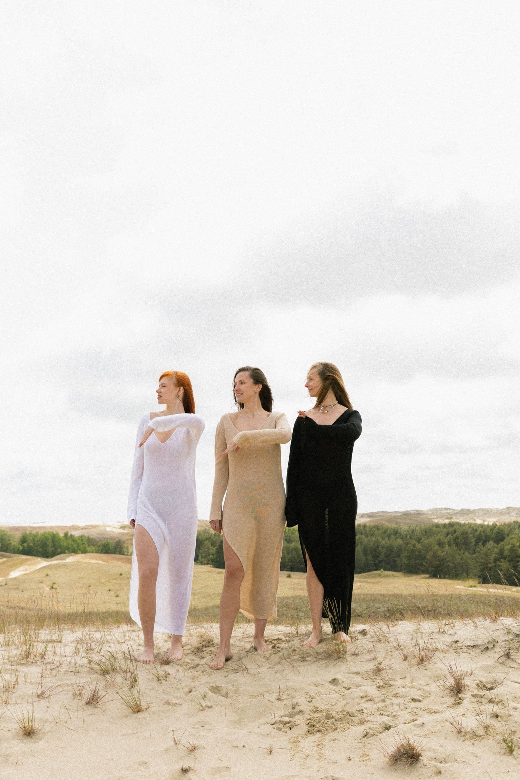 Ob barfuß im Sand oder auf dem Weg zum Abendessen am Meer – dieses lange Kleid wirkt wie eine moderne Meeressirene. Es fällt wunderschön um den Körper und verleiht eine luftige, mühelose Silhouette. Der tiefe Rückenausschnitt strahlt Geheimnis aus, der hohe Schlitz verleiht Freiheit und das natürliche Leinen hüllt Ihren Körper in raue, sonnengeküsste Schönheit. Lassen Sie die Meeresbrise Ihr Duft sein und Leinen Ihre zweite Haut.