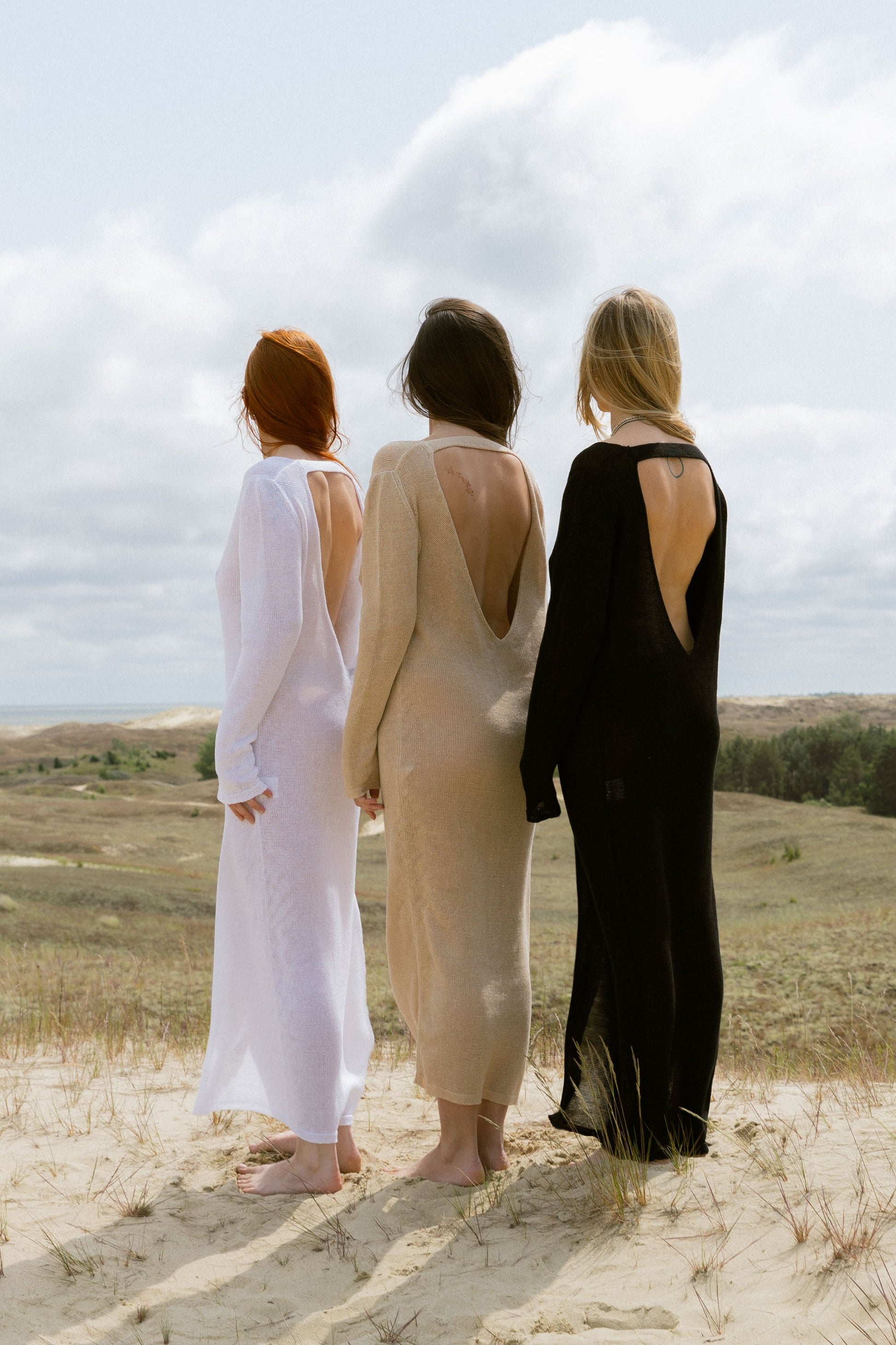 Ob barfuß im Sand oder auf dem Weg zum Abendessen am Meer – dieses lange Kleid wirkt wie eine moderne Meeressirene. Es fällt wunderschön um den Körper und verleiht eine luftige, mühelose Silhouette. Der tiefe Rückenausschnitt strahlt Geheimnis aus, der hohe Schlitz verleiht Freiheit und das natürliche Leinen hüllt Ihren Körper in raue, sonnengeküsste Schönheit. Lassen Sie die Meeresbrise Ihr Duft sein und Leinen Ihre zweite Haut.
