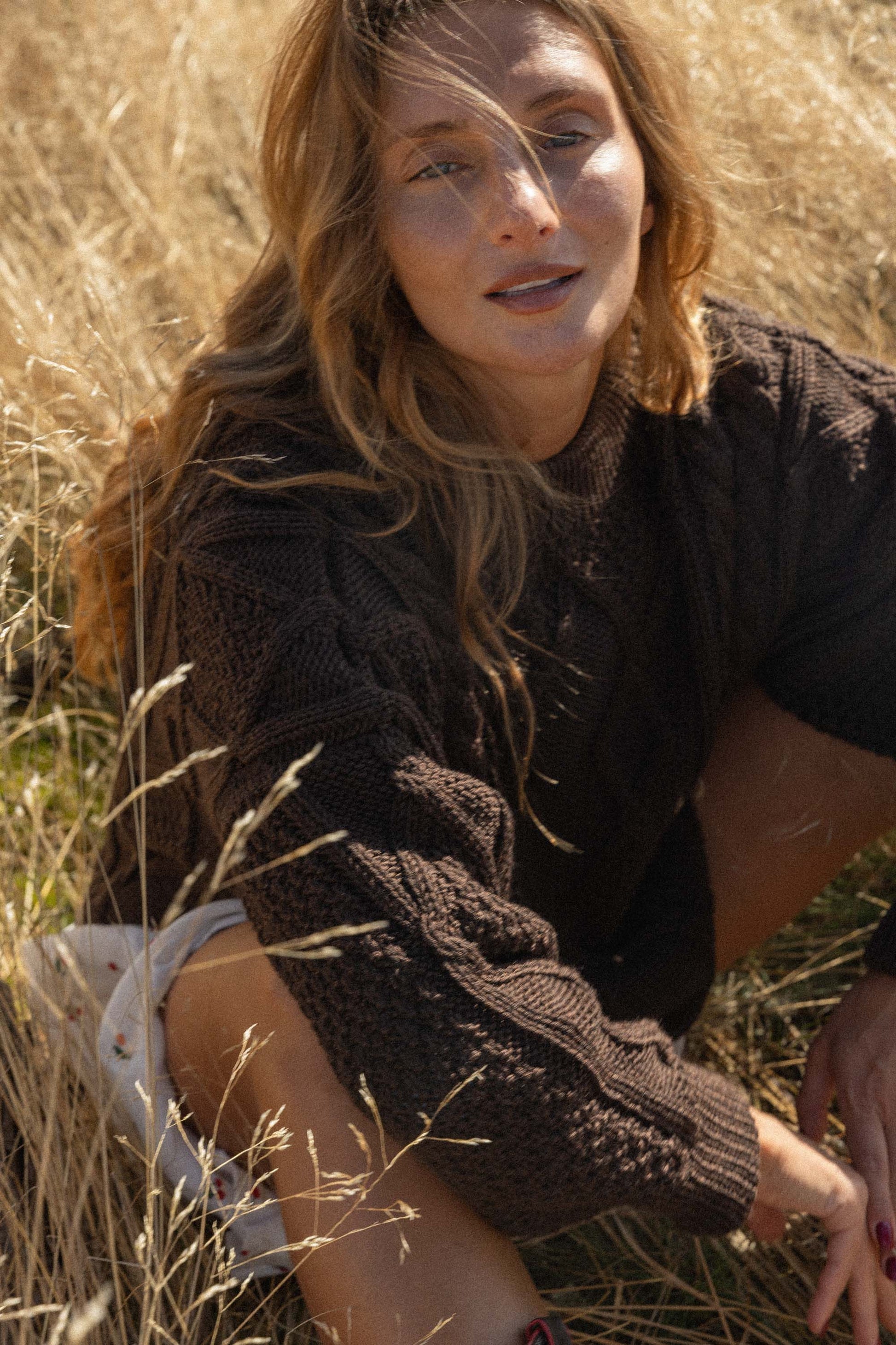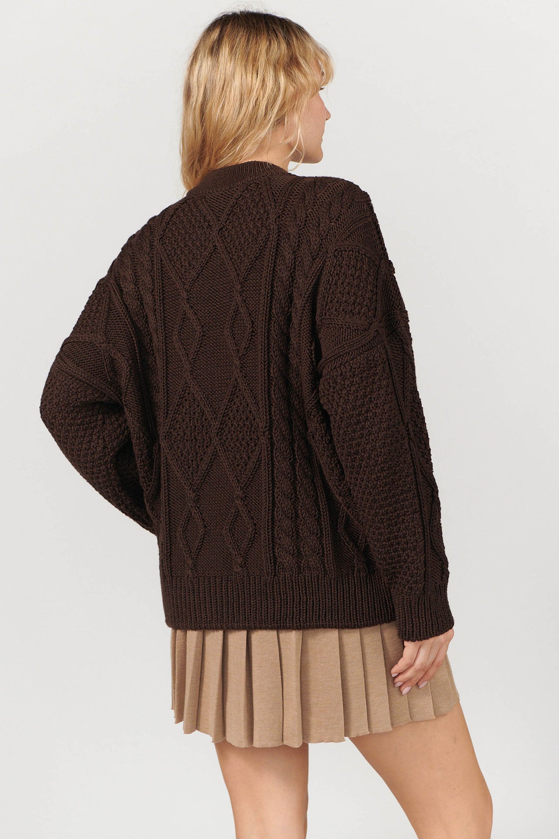 Nonna Zopfmusterpullover aus 100 % Merinowolle Schokolade