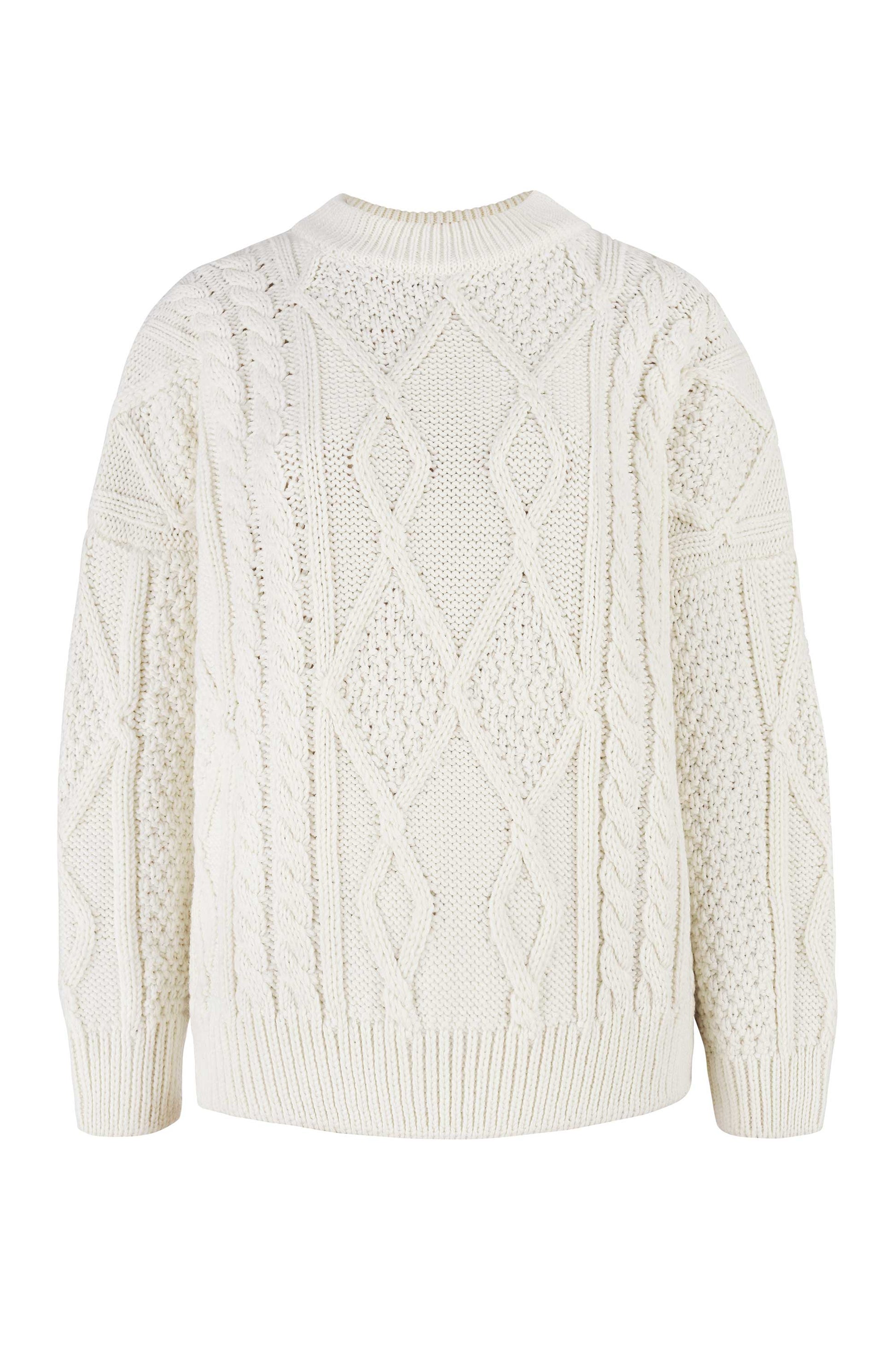 Nonna Zopfmusterpullover aus 100 % Merinowolle Weiß