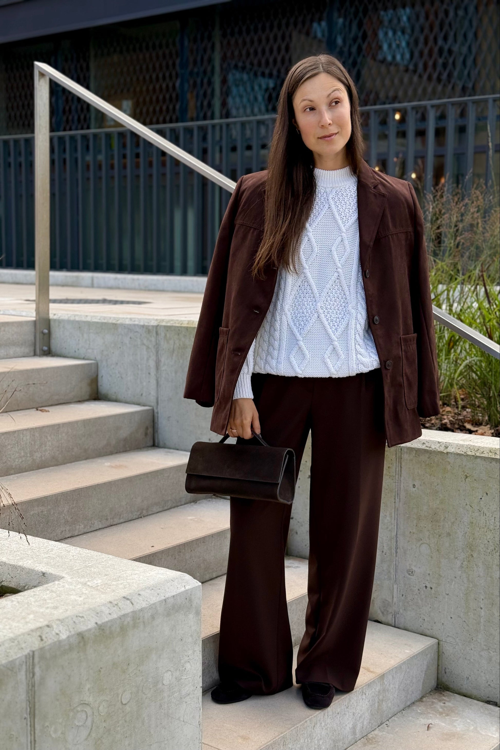 Der Nonna-Pullover ist in Einheitsgröße erhältlich und besticht durch seine lässige Silhouette mit dicken Zopfmustern – perfekt für viele Körpertypen. Ein zeitloser Style für die kalte Jahreszeit, der viele Jahre hält. Dieser Pullover wird schnell zu einem kuscheligen Lieblingsstück, wenn die Temperaturen sinken, und bietet Wärme und unbeschwerten Komfort.