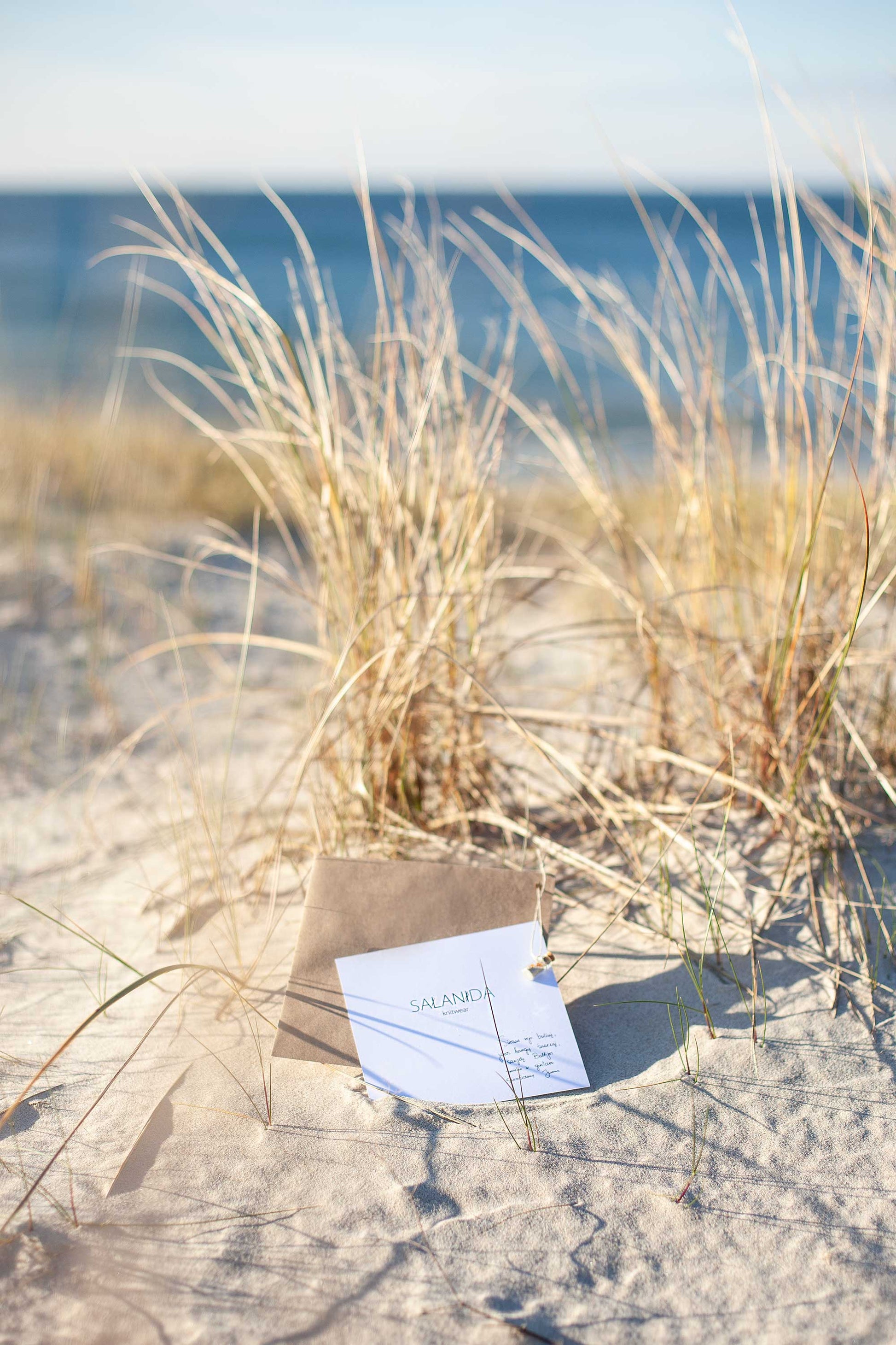 Dies ist eine physische Geschenkkarte, die per Kurier/Post verschickt wird. Eine Kopie des Geschenkcodes wird per E-Mail gesendet. Die gedruckte Geschenkkarte wird in einem Umschlag mit einem Hauch Ostseegeist geliefert – einer kleinen Glasflasche mit weißem Sand und baltischem Bernstein.