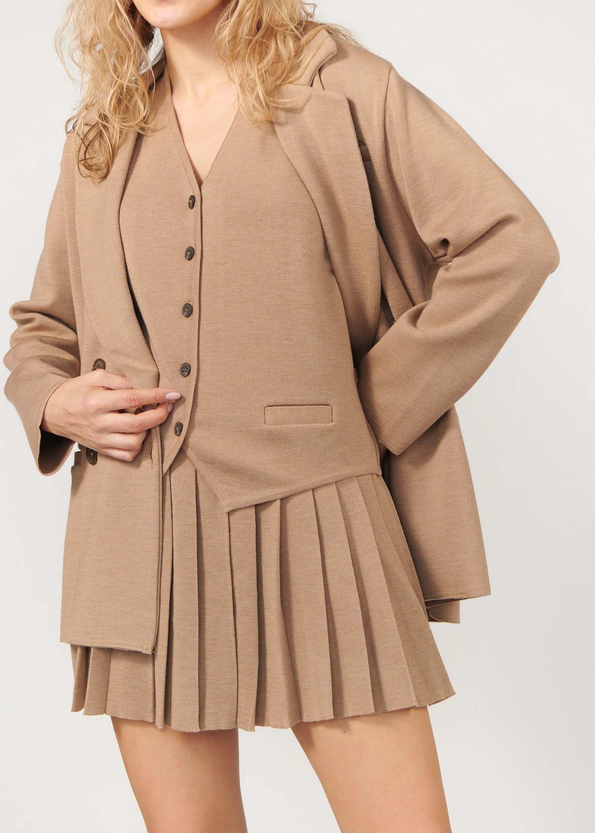 Piccolo Plissee-Minirock aus 100 % Merinowolle Beige