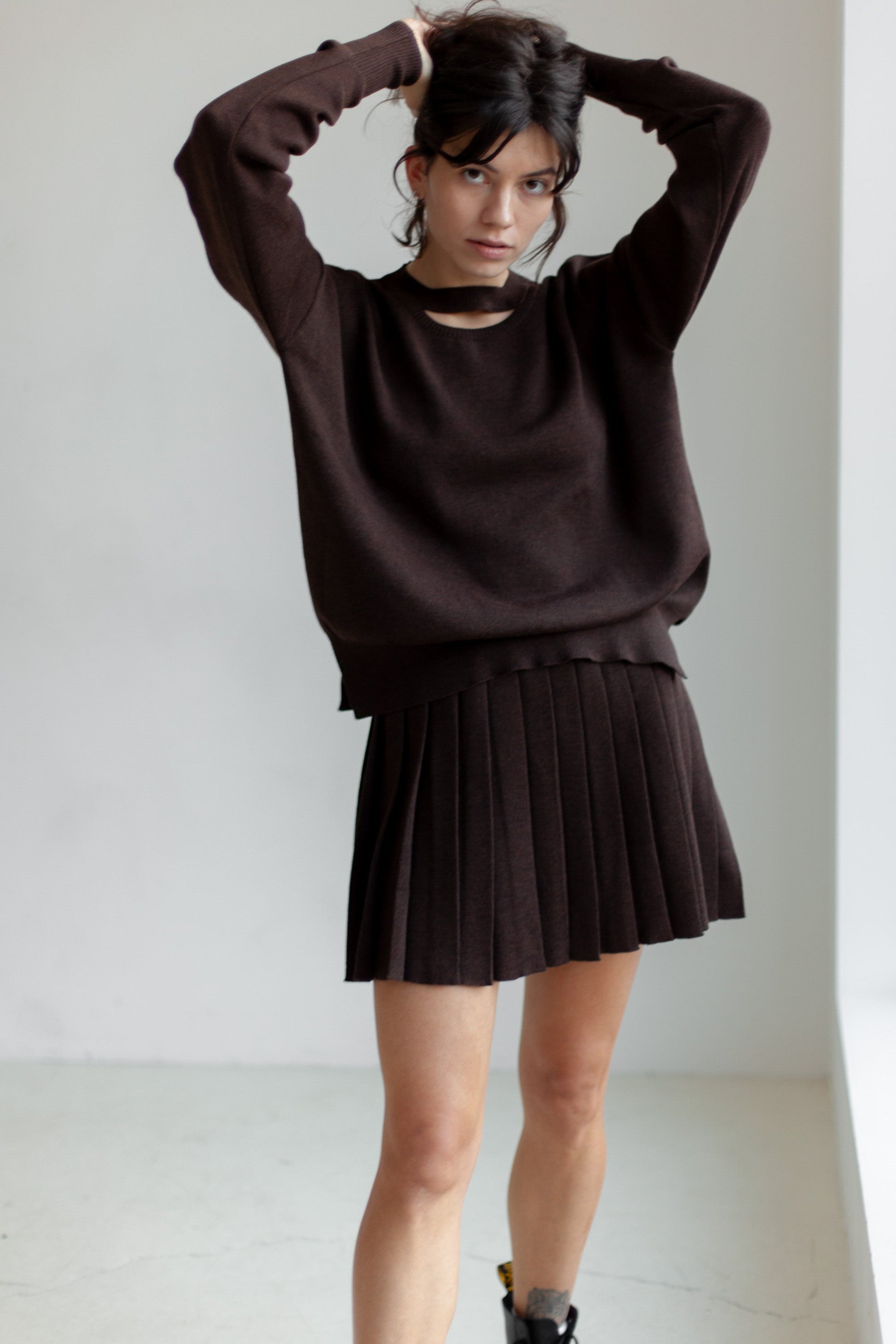 Der Rotondo-Pullover ist unser beliebtes und gefragtes Modell. Er besticht durch seine entspannte Silhouette und den Ausschnitt, der etwas Haut freigibt. Die Einheitsgröße mit dehnbarer Passform passt perfekt zu verschiedenen Körpertypen.