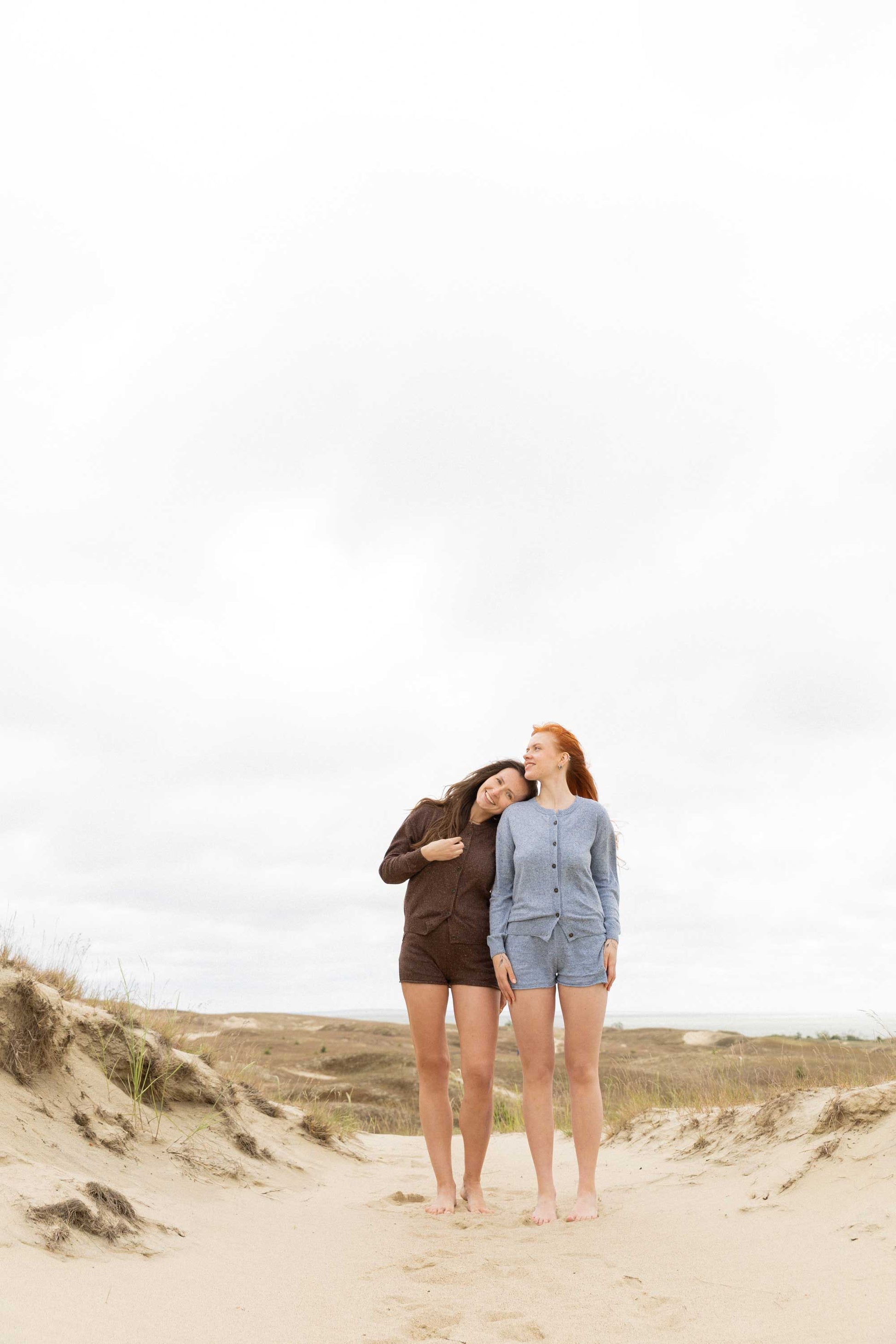Die Sabbia-Shorts bestehen aus einer luxuriösen Mischung aus Bio-Baumwolle, Seide, Merinowolle und Viskose, die eine einzigartige sandfarbene Textur erzeugt. Sie haben Seitentaschen und sitzen bequem in der Taille mit einem verstellbaren Gummiband für eine individuelle Passform – genau wie bei Kinderkleidung! Wir haben sie an verschiedenen Freundinnen mit unterschiedlichen Körperformen und -größen getestet, und alle waren sich einig, dass sich die Passform perfekt anpasst, sogar während der Schwangerschaft!