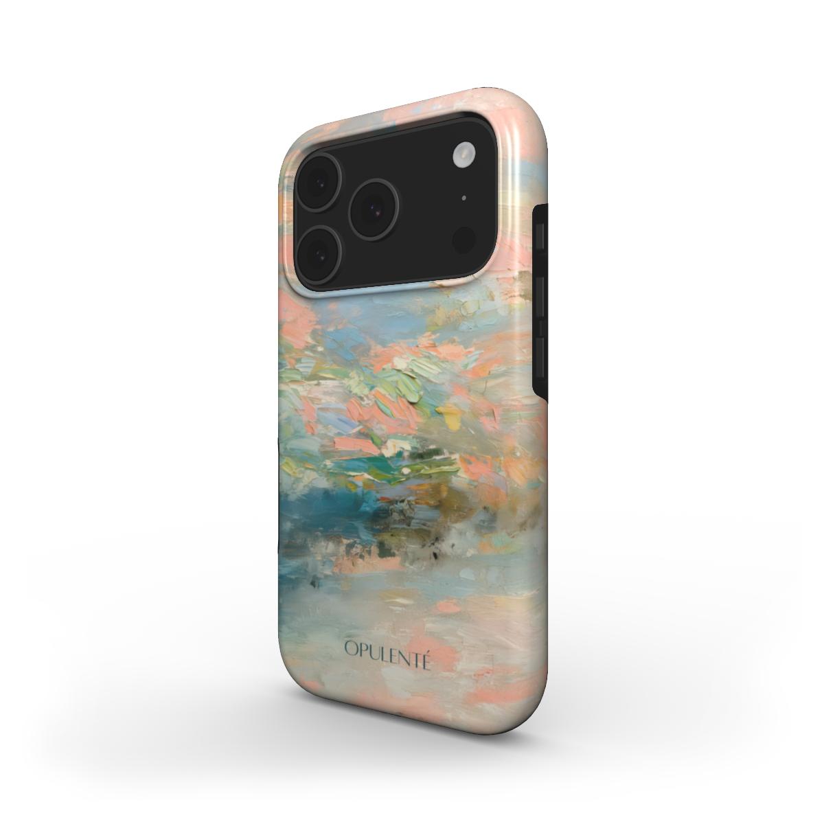 A gentle collision of dawn-kissed petals and tranquil skies. Aurora d’Été captures the fleeting softness of a summer morning in brushstrokes of blush pink, sage, and sky blue — a poetic escape to serenity.