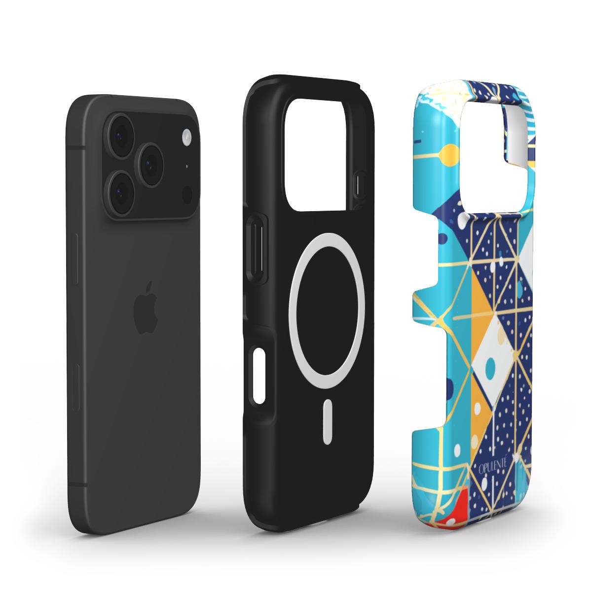 Introducing our vibrant 'Technicolour' collection, a symphony of hues and geometric precision. Each iPhone® case is a masterpiece of design and protection, offering a kaleidoscope of colours and dynamic patterns and MagSafe compatability. With sleek lines and geometric figures, these cases not only make a bold statement but also provide reliable defence against scratches, dust, oil, and dirt. The fusion of form and function ensures easy installation and removal, while precisely aligned port openings maintain functionality without compromise. Immerse yourself in a world of endless possibilities with the 'Technicolour' collection – where artistry meets innovation in a breathtaking display of opulence.