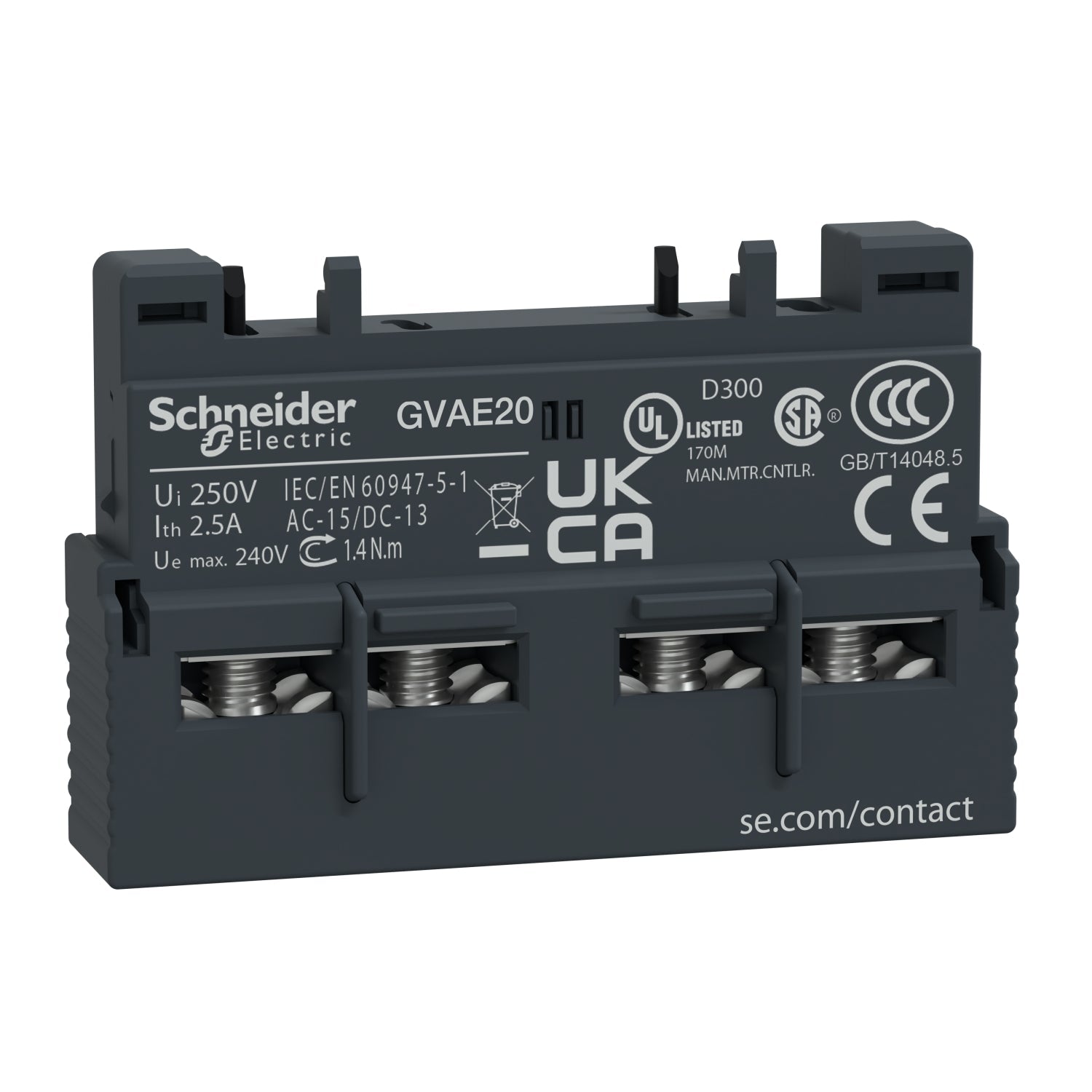 GVAE20 Auxiliary contact block,TeSys Deca,2NO,front mounting,for GV2