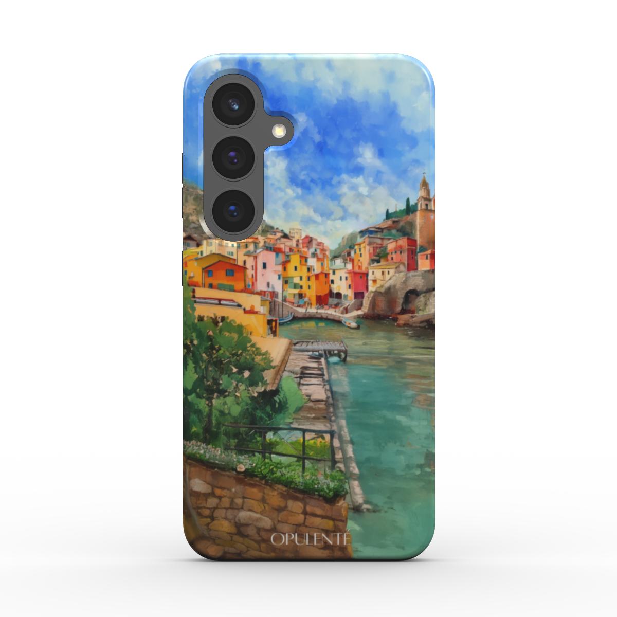 Inspired by the cliffs and colorful coastal homes of Manarola, this case reflects the vibrancy of the Ligurian coast. The dynamic blend of ocean blues and sunset hues brings the beauty of this famous Italian beach destination to life. With intricate textures and a harmonious design, it offers an exquisite way to carry the spirit of Italy’s most scenic beach.