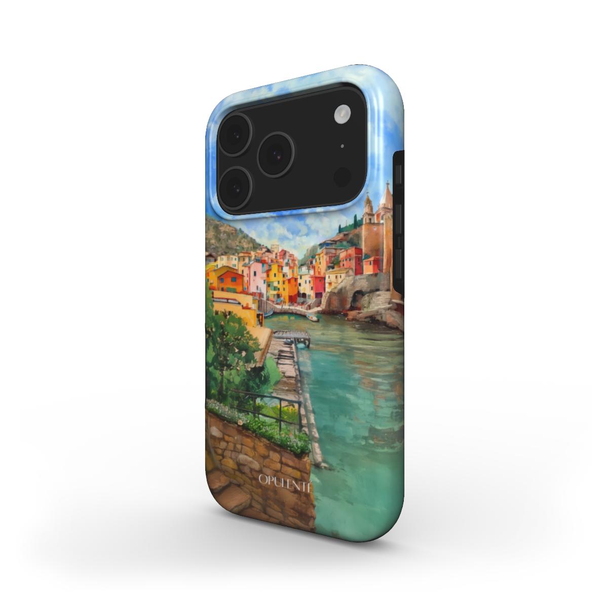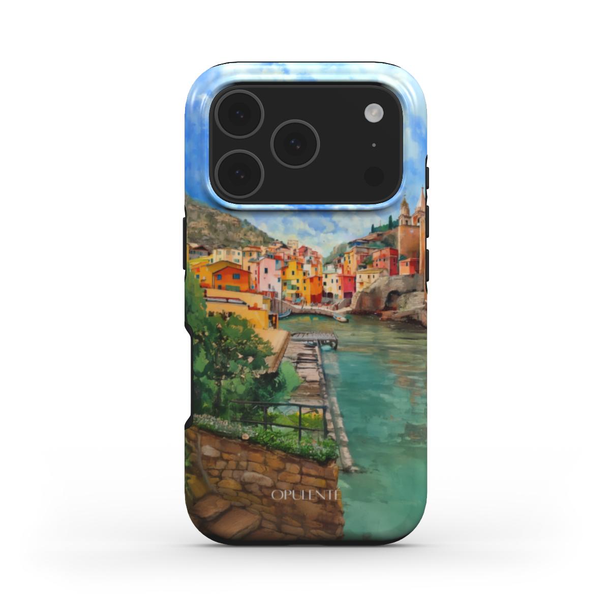 Inspired by the cliffs and colorful coastal homes of Manarola, this case reflects the vibrancy of the Ligurian coast. The dynamic blend of ocean blues and sunset hues brings the beauty of this famous Italian beach destination to life. With intricate textures and a harmonious design, it offers an exquisite way to carry the spirit of Italy’s most scenic beach.