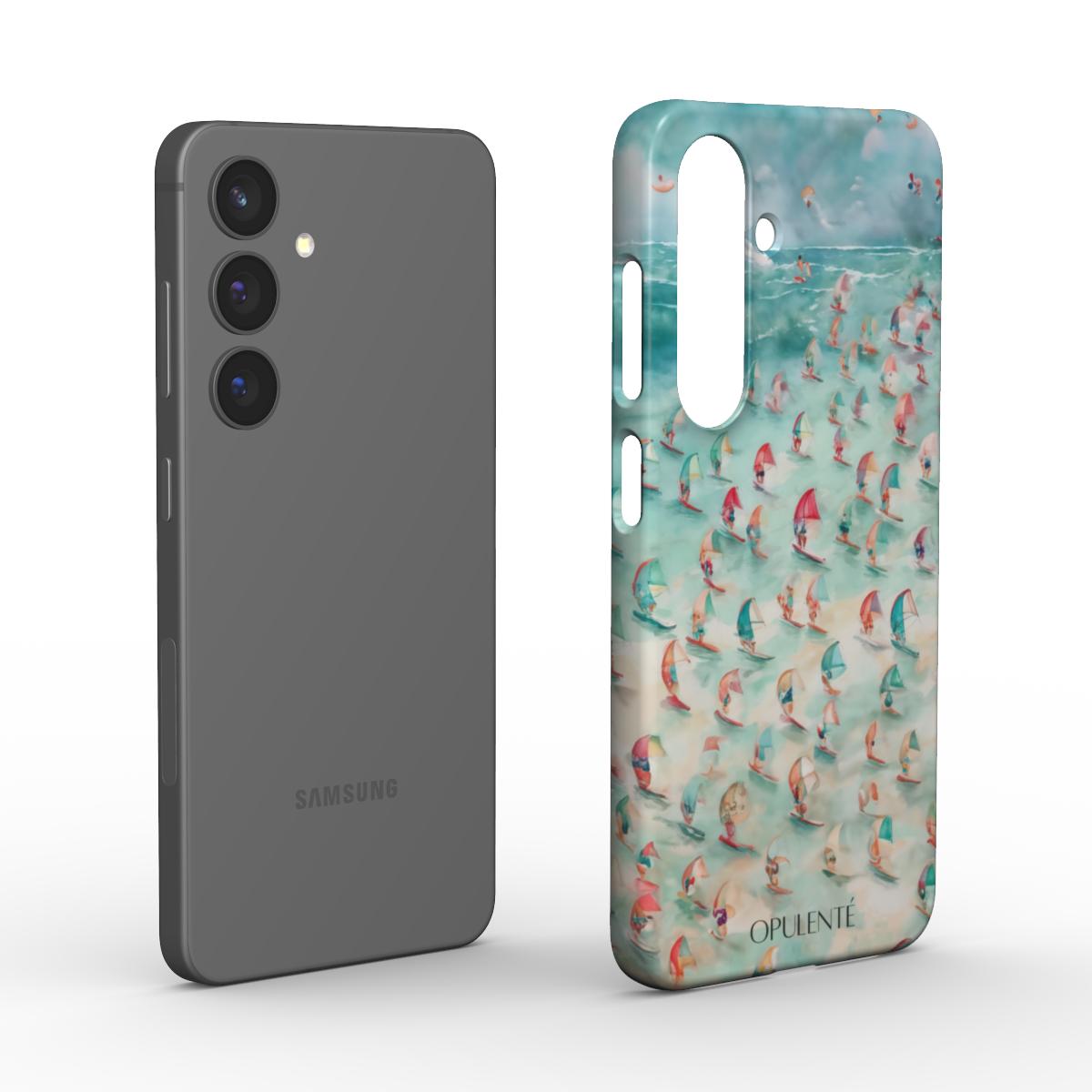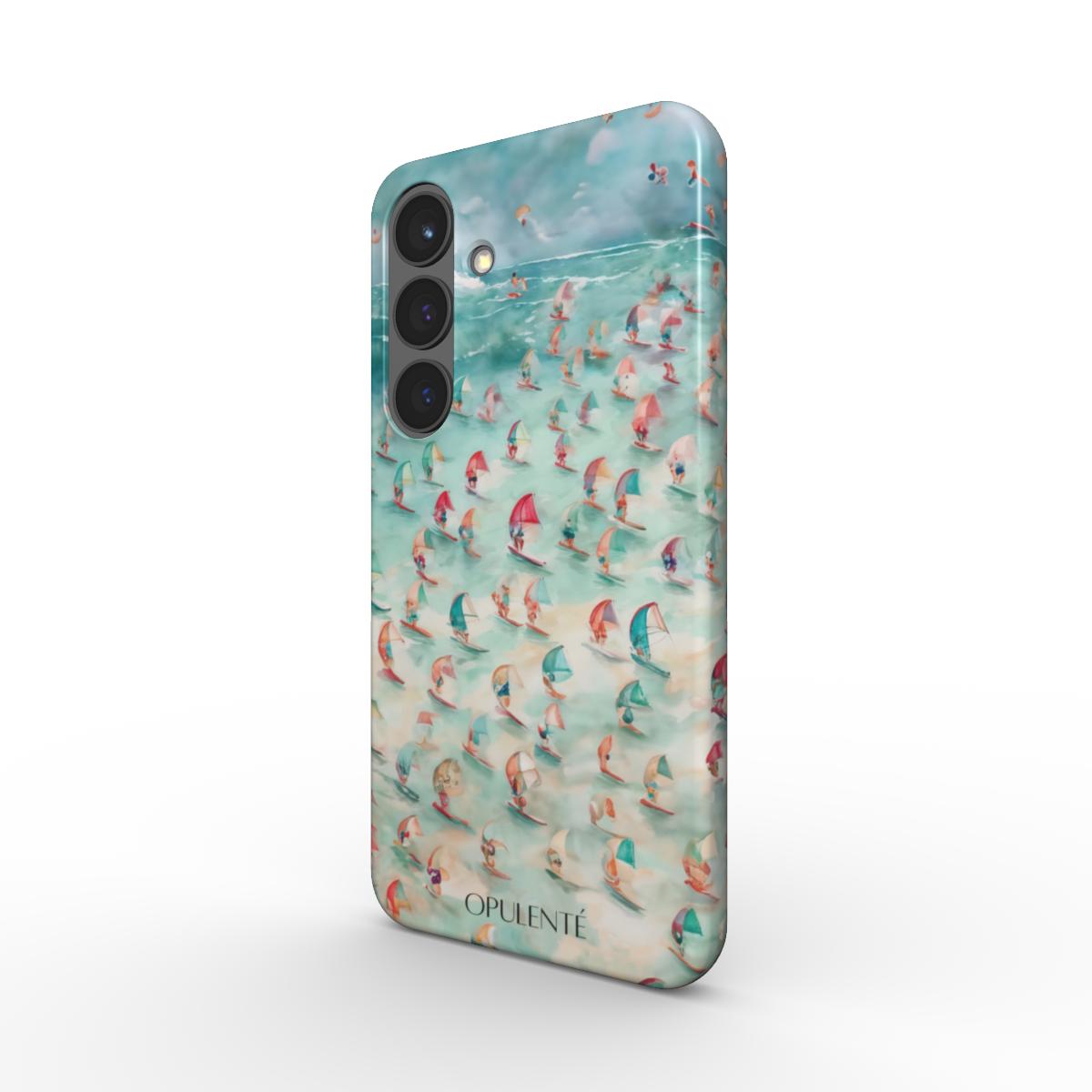 Harness the power of the wind with “Windswept Velocity,” a striking portrayal of kite surfers riding the breeze over azure waters. The image is a vibrant exploration of freedom and movement, where the sky and sea merge to create a limitless playground. Every kite and rider is a bold statement of control and daring, perfectly encapsulating the thrill of being propelled by nature’s unseen force.