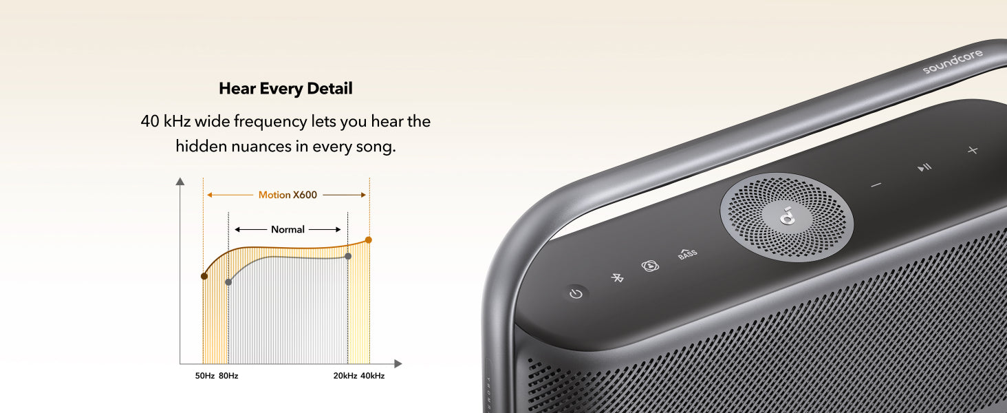 Anker Soundcore Motion X600 – tai kolonėlė, kuri sujungia premium garso kokybę su tvirtumu ir mobilumu.