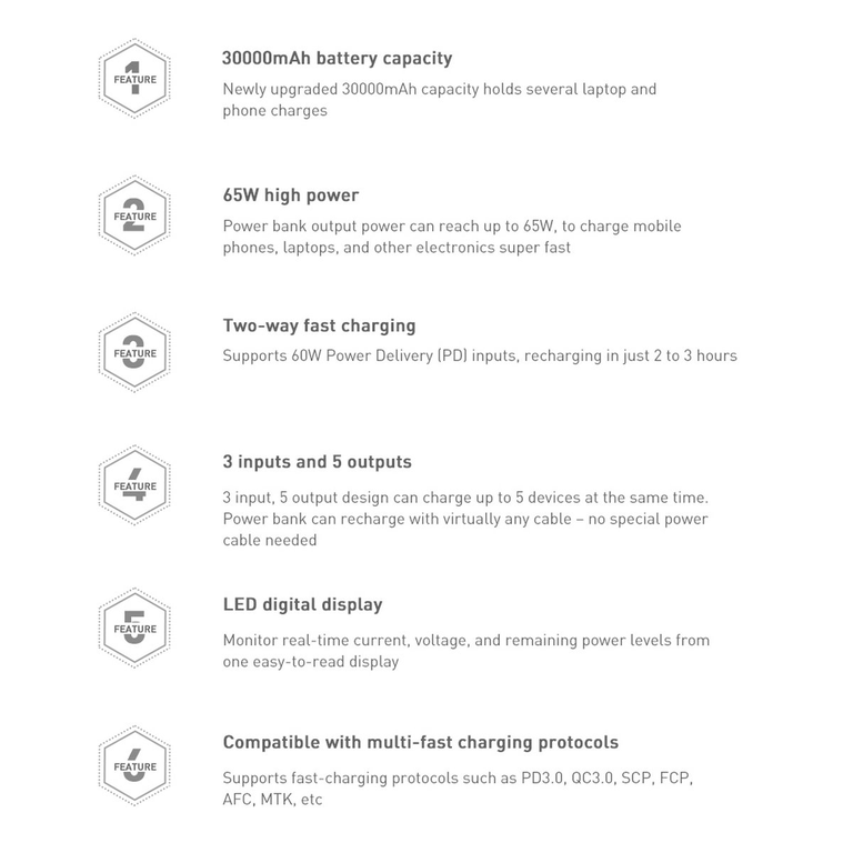 Ar norite power bank, kuris galėtų įkrauti net nešiojamą kompiuterį? Baseus Amblight 30000 mAh 65W - tai ne tik akumuliatorius, tai jūsų asmeninė energijos stotis!