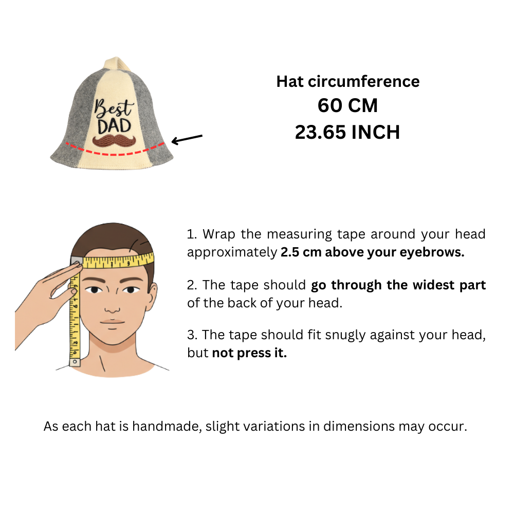 Treat the Best Dad to Sauna Comfort with this Fun Wool Hat! This cozy 100% wool sauna hat proudly declares "Best Dad," making it the perfect way for him to relax in the heat while showing off his awesome dad status. Not only will it protect his hair and scalp, but it'll also bring a smile to his face every sauna session.