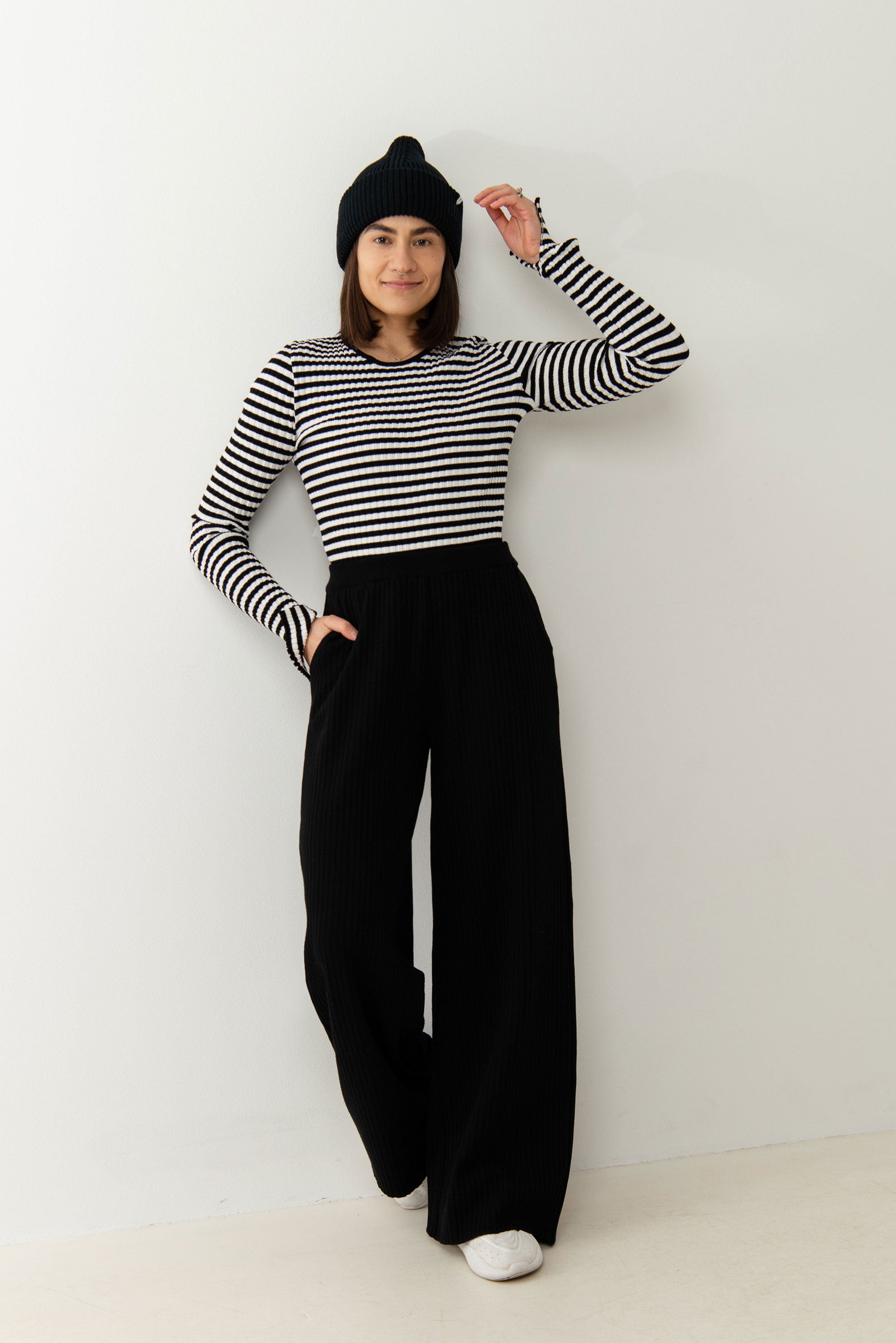 Brera Ribbed Long-Sleeve Top Black Stripes