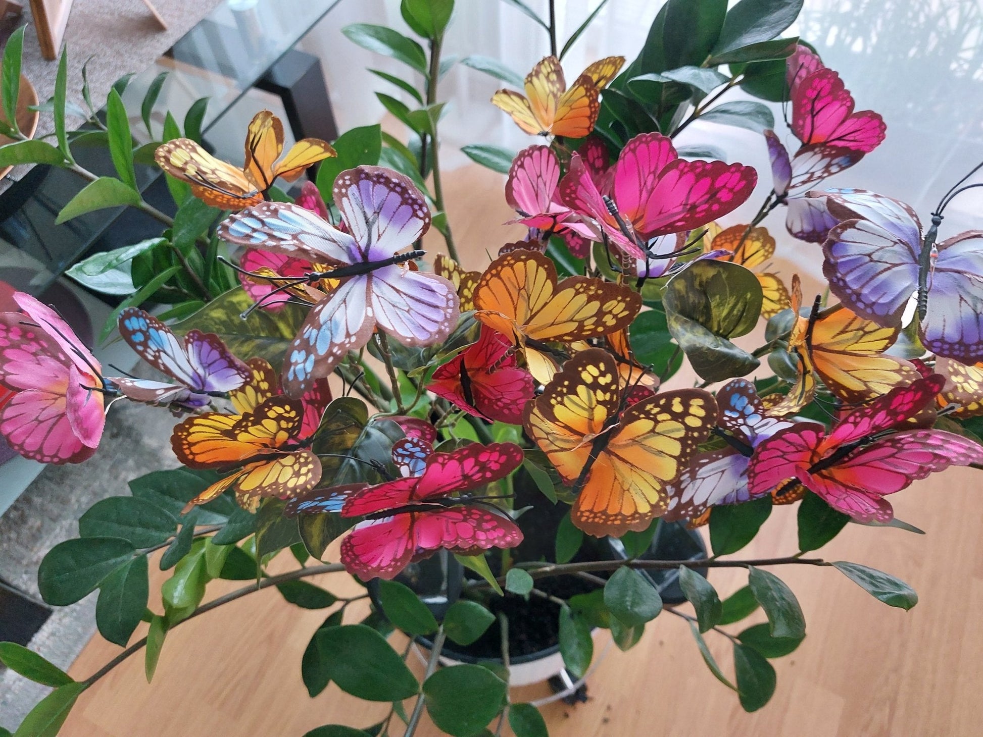 Dizainas: Spalvoti drugeliai puokštėje