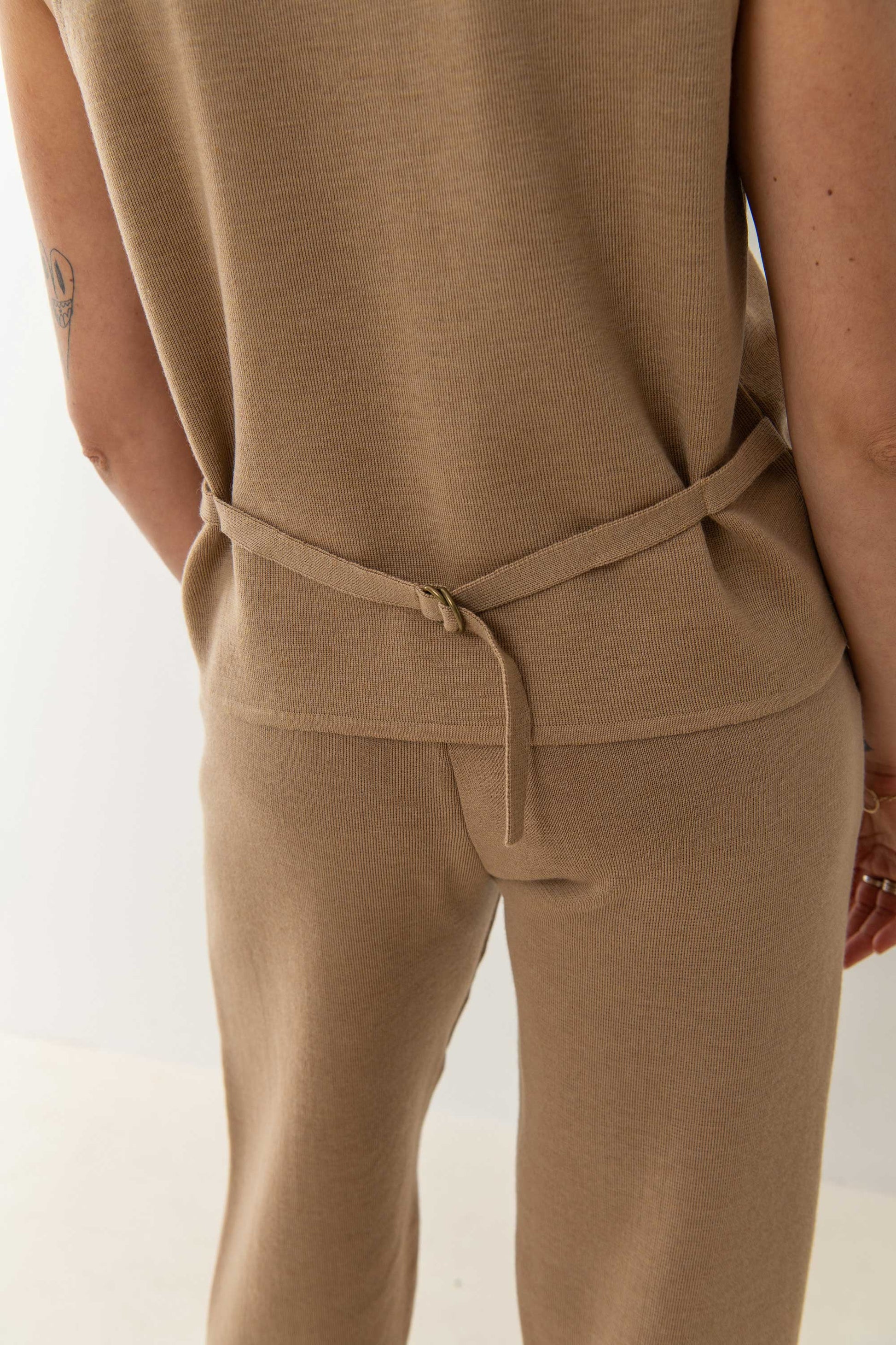 The Galante knitted waistcoat adds a stylish twist to classic tailoring. With a slightly relaxed fit, bio-resin buttoning at the front, and an adjustable belt at the back, it’s designed to be both chic and functional. Galante is sure to become an instant favorite, seamlessly slotting into the rest of your wardrobe.