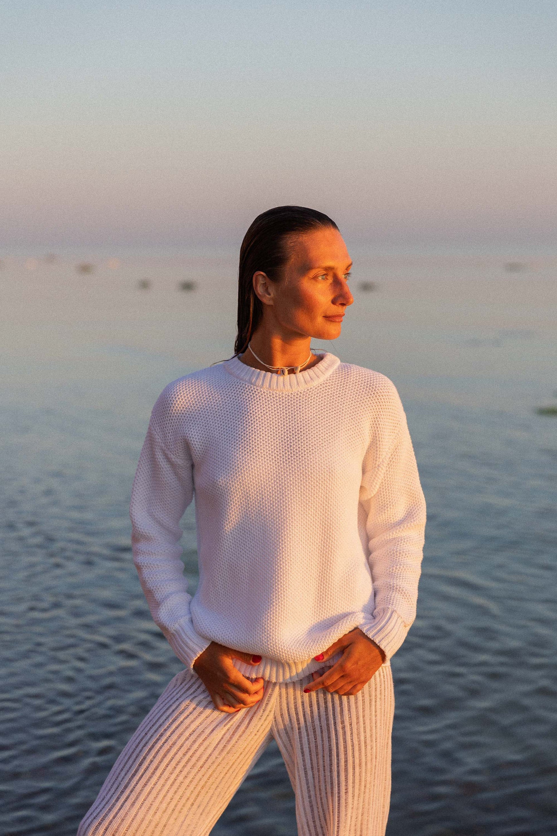 Shoutout to comfort and relaxed fits! This oversized and unisex jumper is the finest definition of effortless comfort and modern look. Featuring a tuck stitch pattern, it’s spun from 100% organic cotton. Designed consciously with a good feel and comfort it will perfectly fit him and her.
