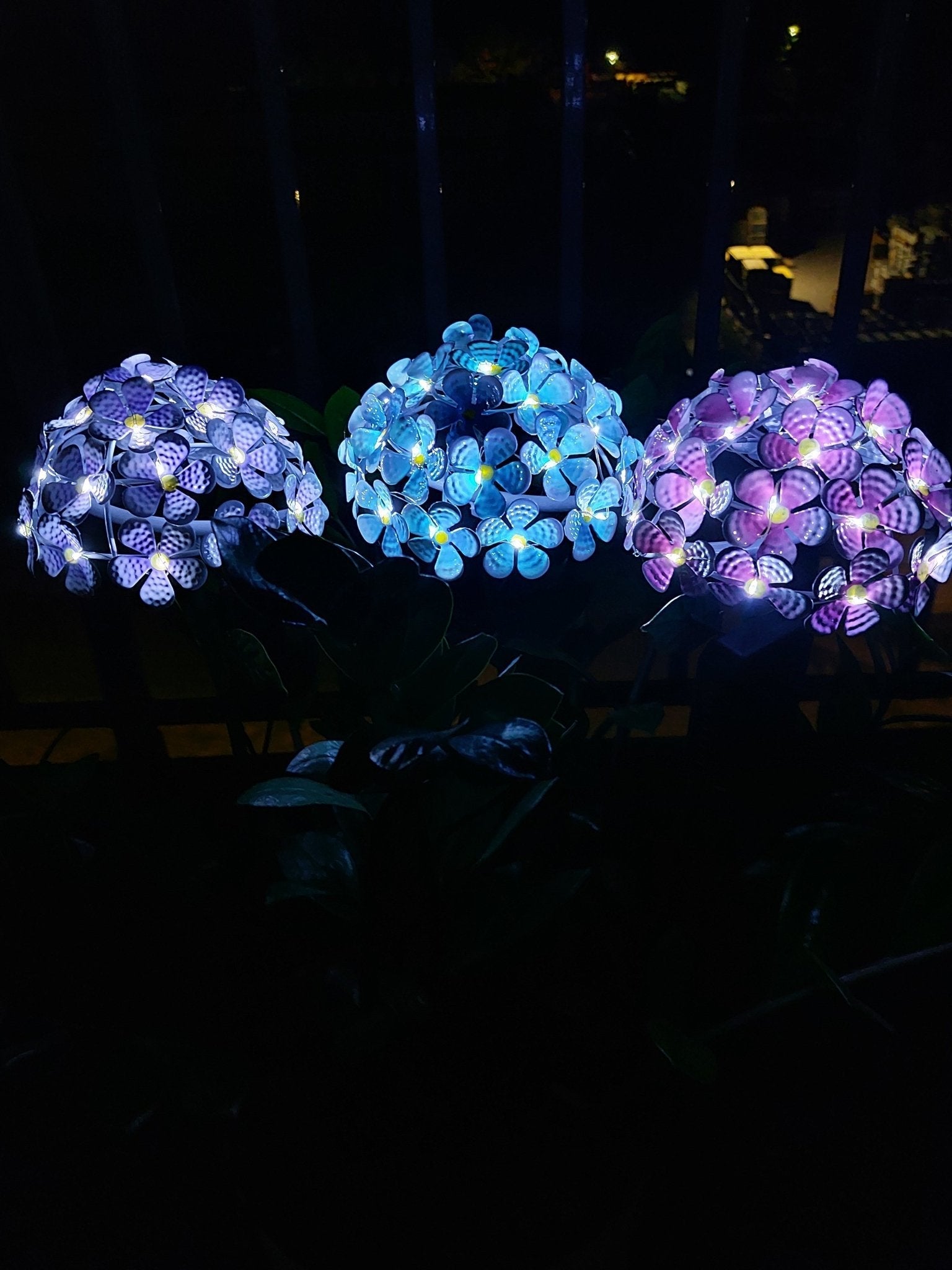 Hortenzijos Saulės Šviestuvas - Elegantiški Gėlių LED Motyvai