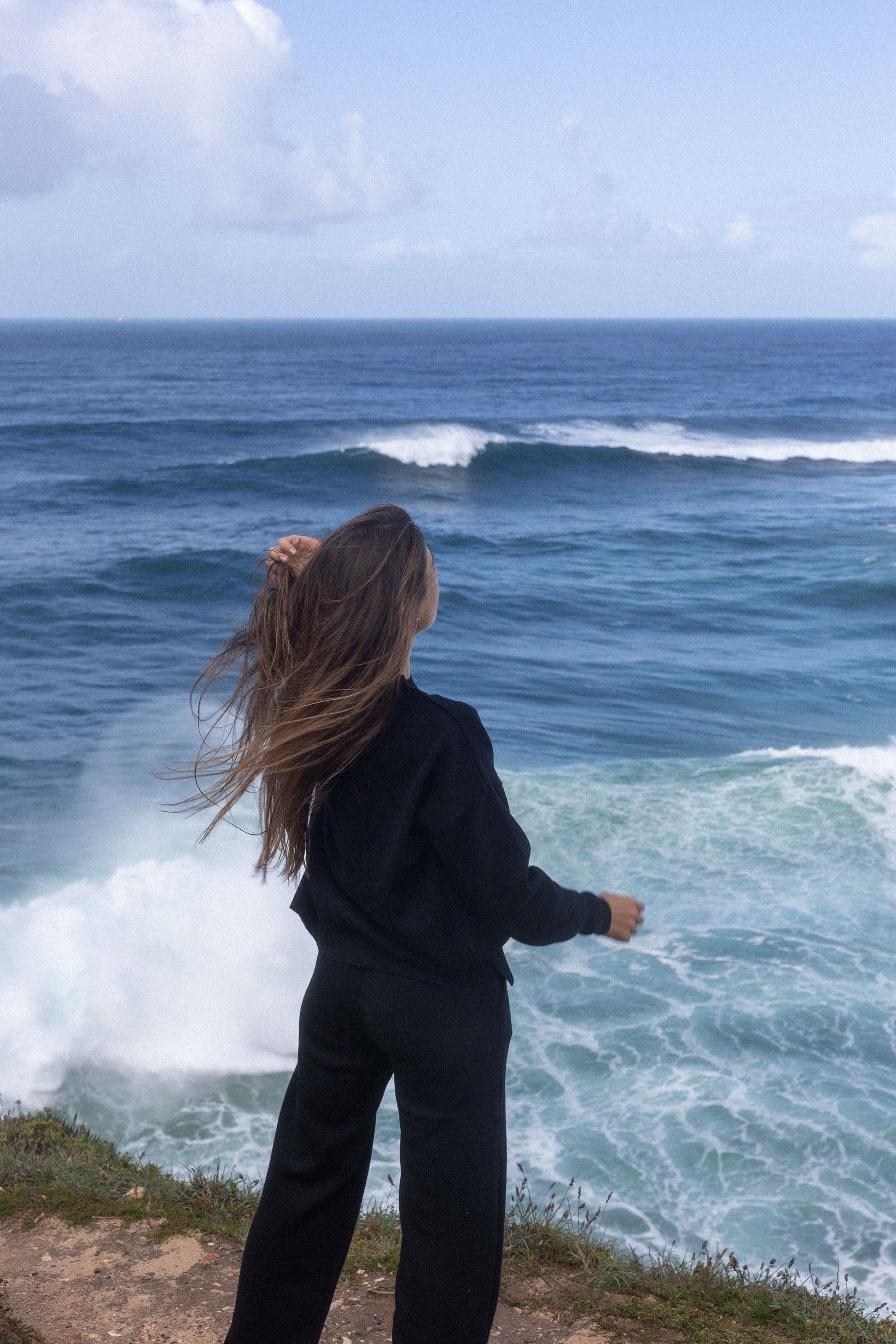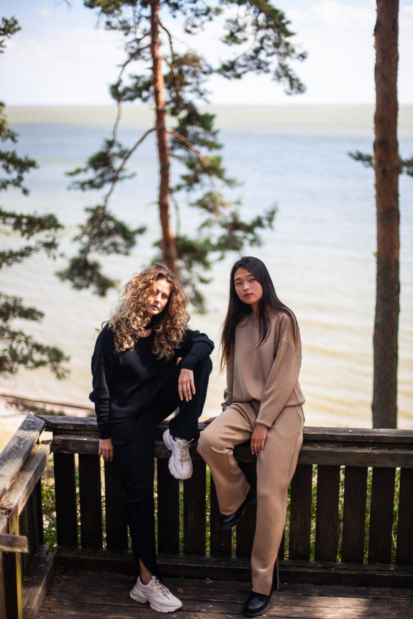 They sit on the waist with an adjustable elastic band ensuring a personalized fit. Yes, just like in children's clothes! It worked great for our clients. We tried them on on a bunch of our friends with different body shapes and sizes - they all agreed the fit was just perfect to adapt even during pregnancy! Team them up with Rotondo Jumper for a perfect co-ord.