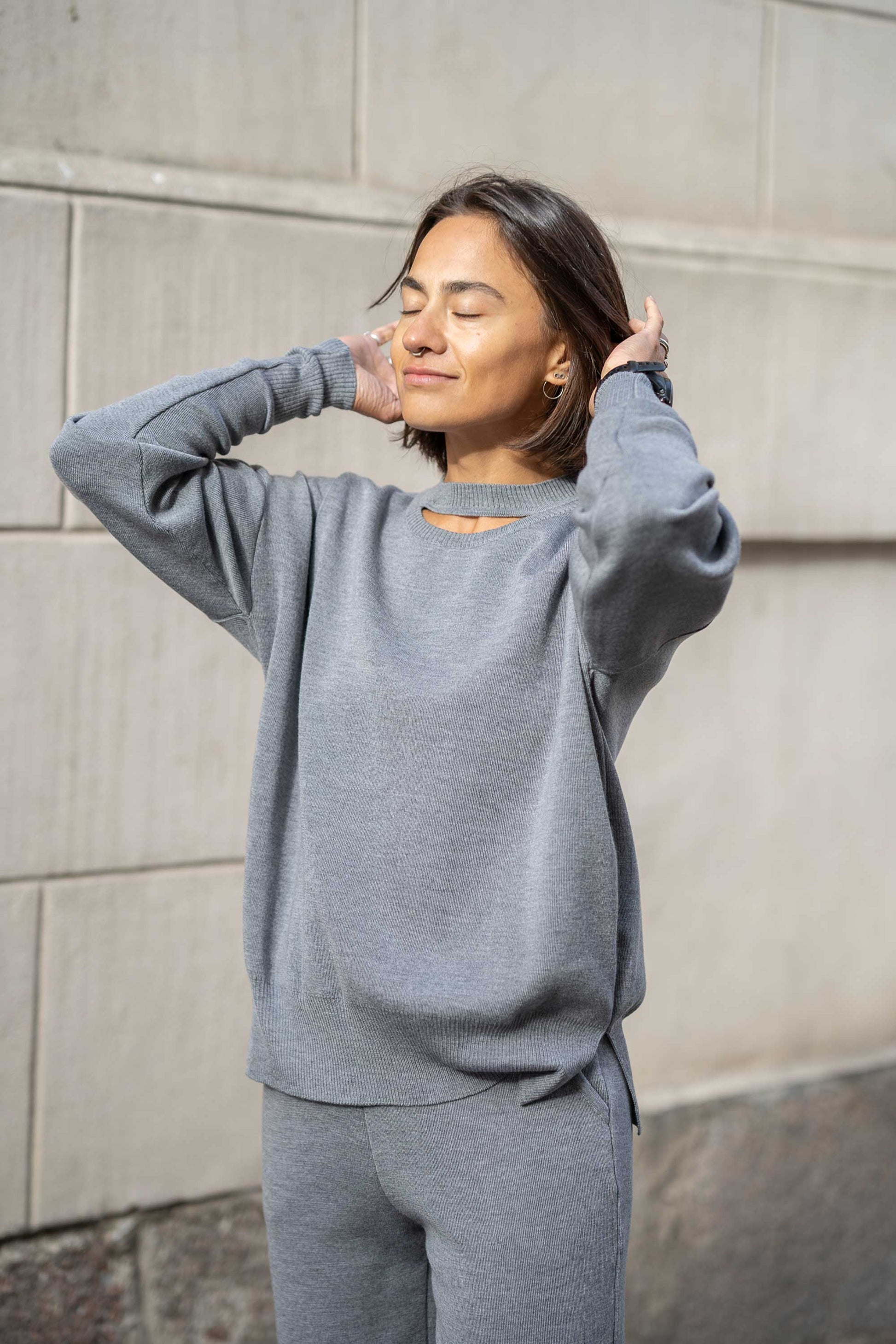 Ora & Rotondo 100% Merino Co-ord in Light Grey
