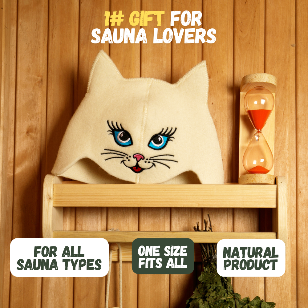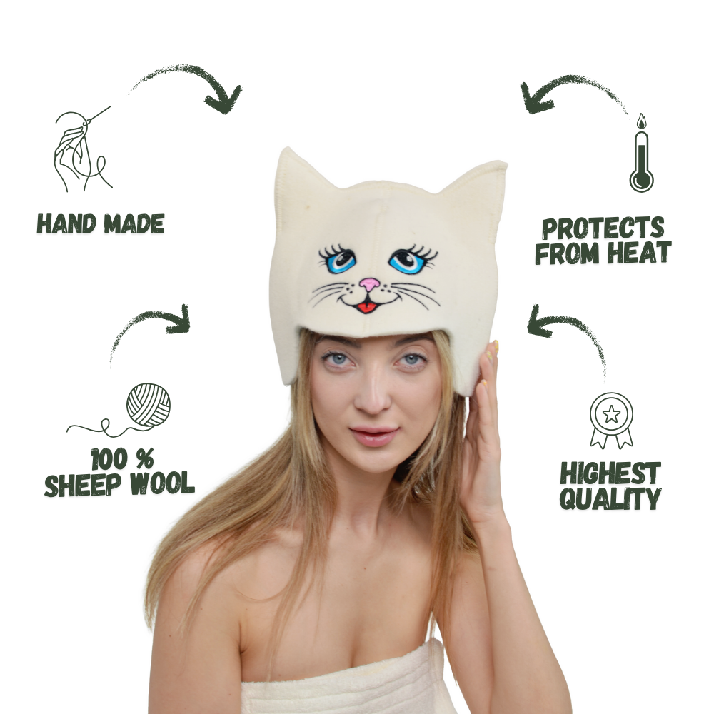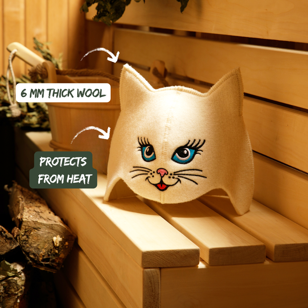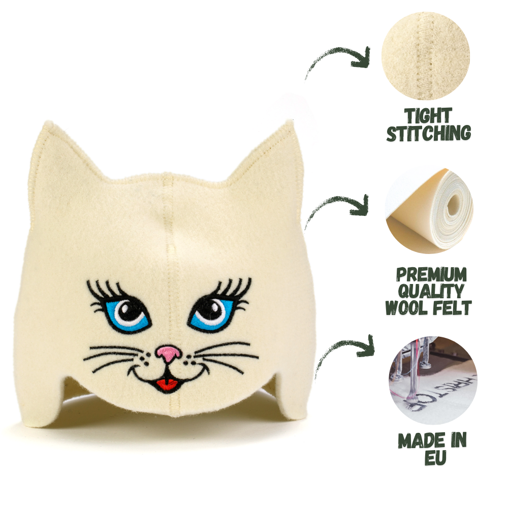 Sauna Hat ‘Blue-eyed Kitty’ 100% Wool