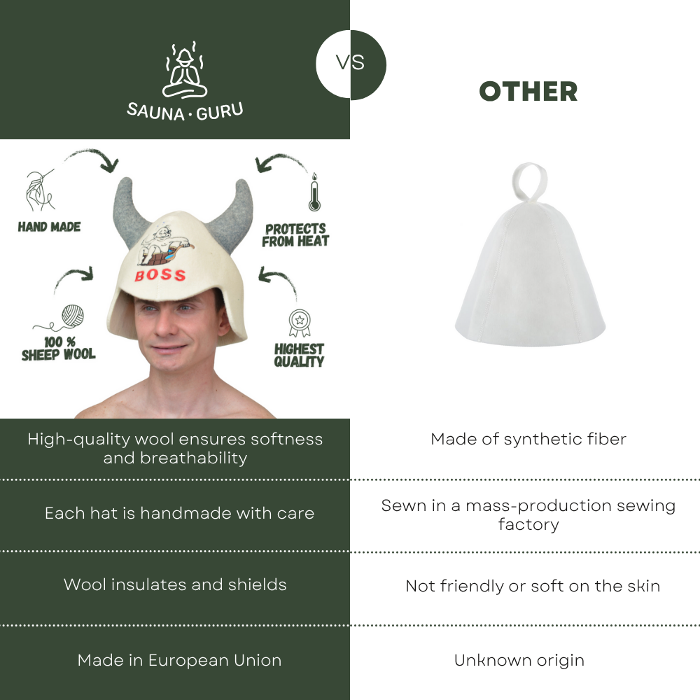 Elevate your sauna experience with our exceptional Sauna Hats – where quality meets comfort. Crafted from 100% wool, this sauna hat is the perfect accessory for your sauna sessions. It’s not just a hat; it’s a commitment to comfort, quality, and sustainability.