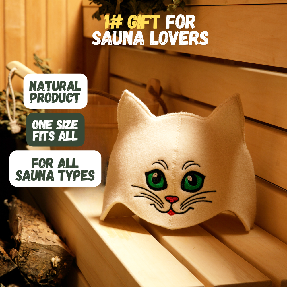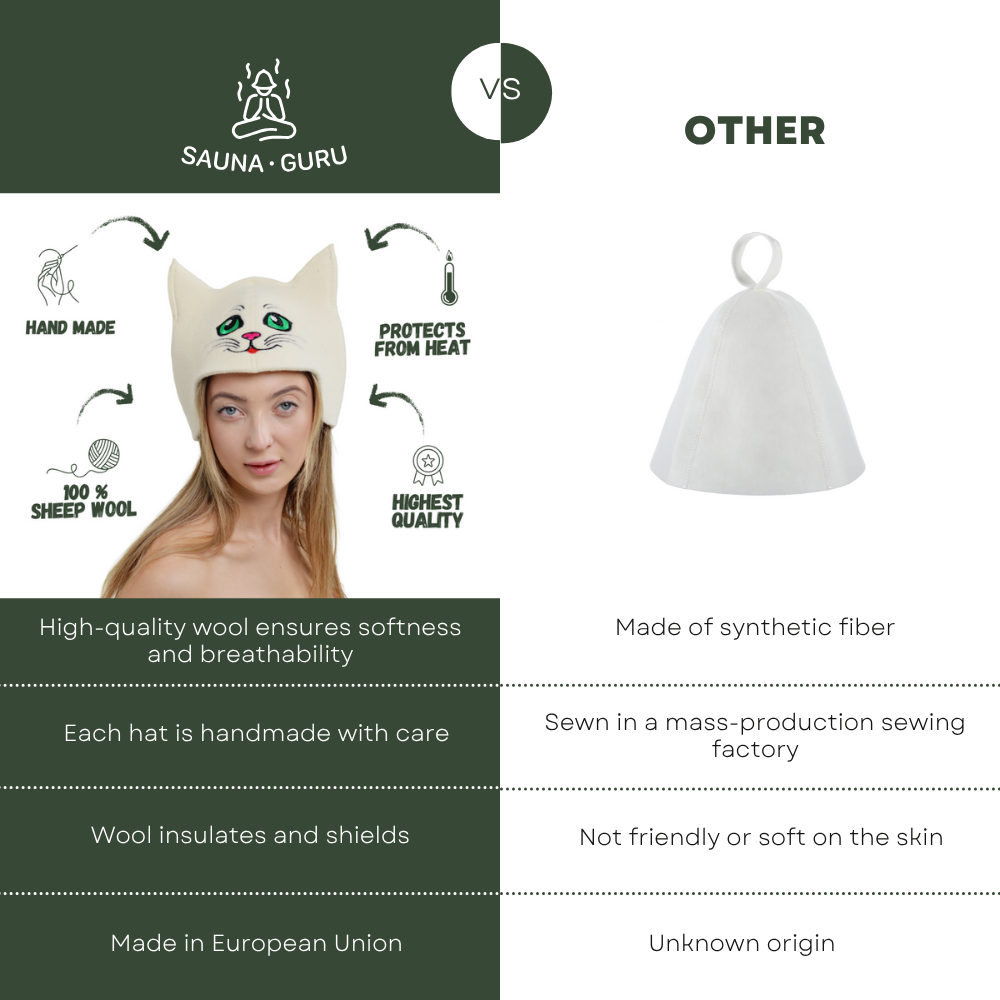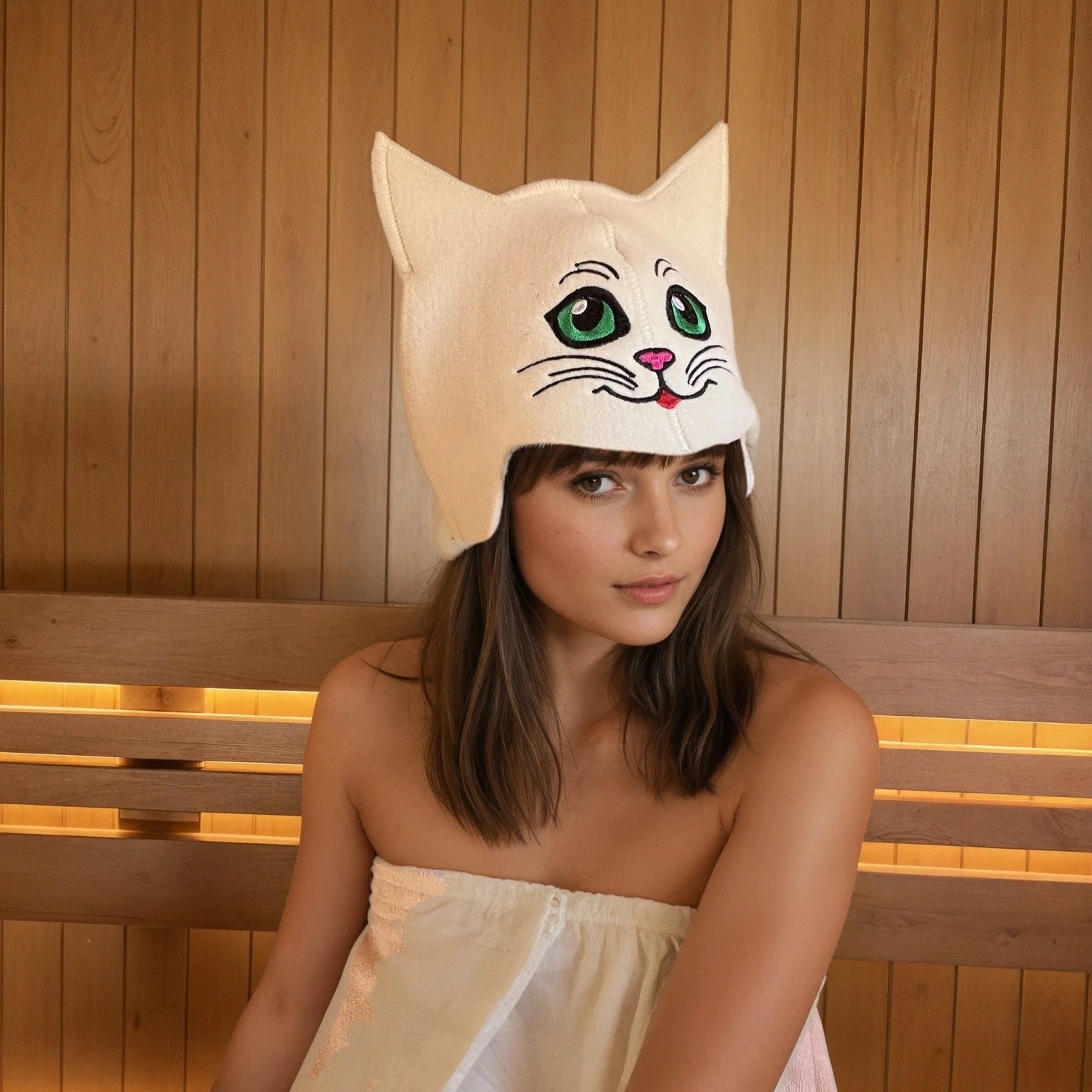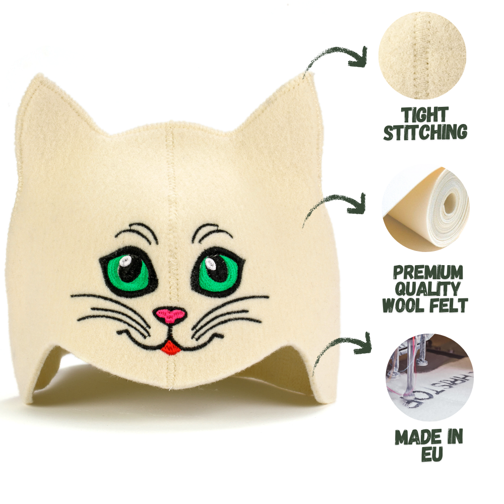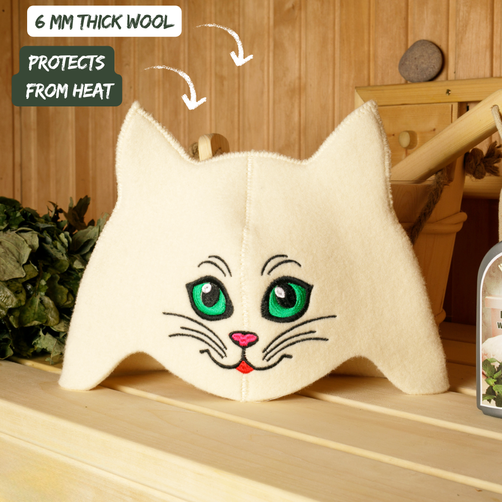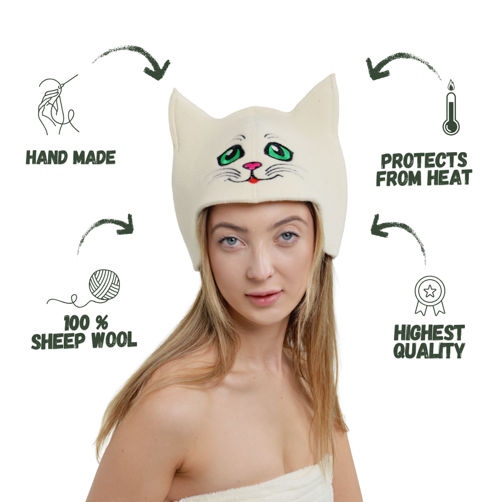Sauna Hat ‘Green-eyed Kitty’ 100% Wool