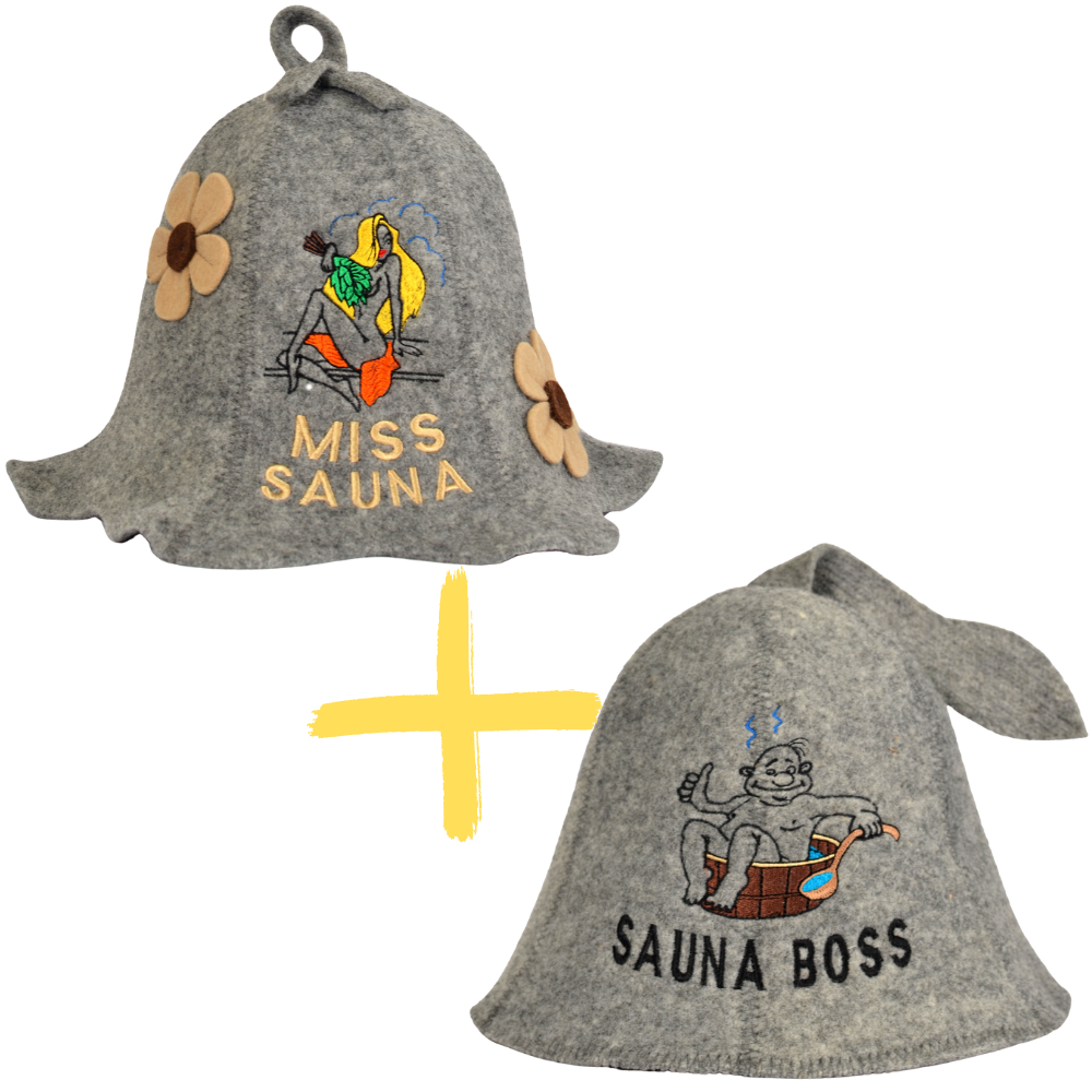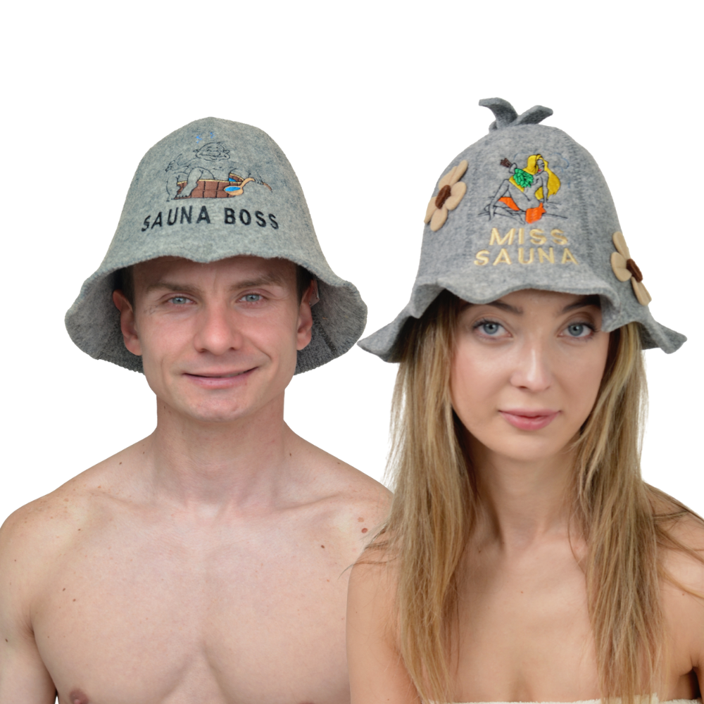Sauna Hat “Miss Sauna” & “Sauna Boss”100% Wool, Set of 2