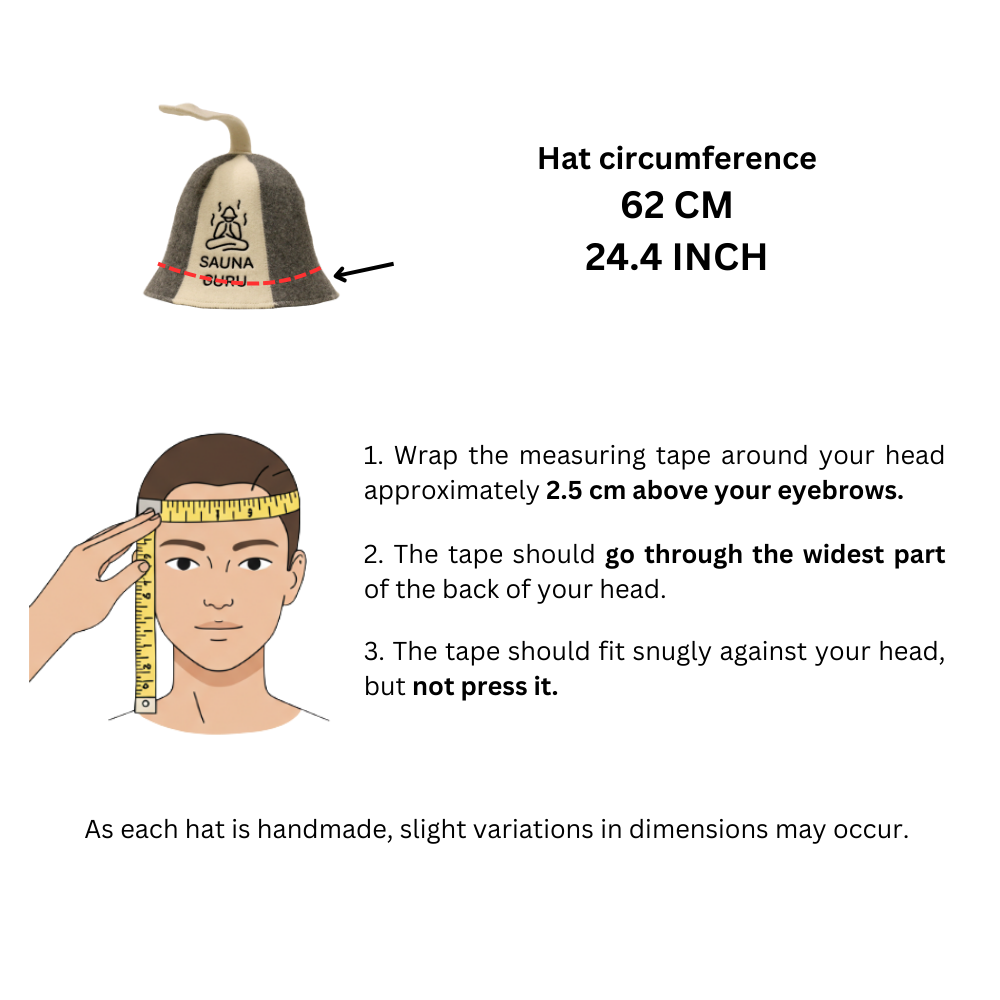 Elevate your sauna experience to a spiritual level with the "Sauna Guru" hat, crafted from 100% pure wool. This hat not only protects your head and hair from the heat but also symbolizes your mastery of the sauna rituals.