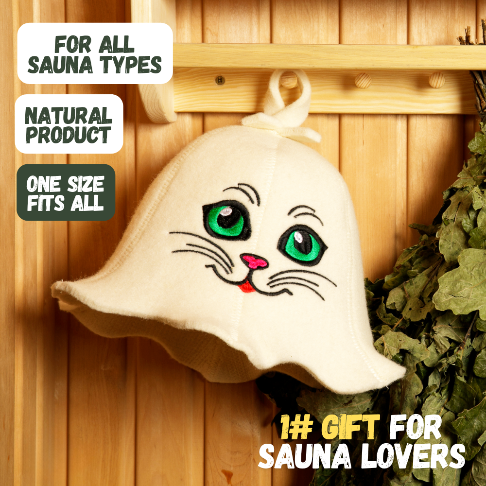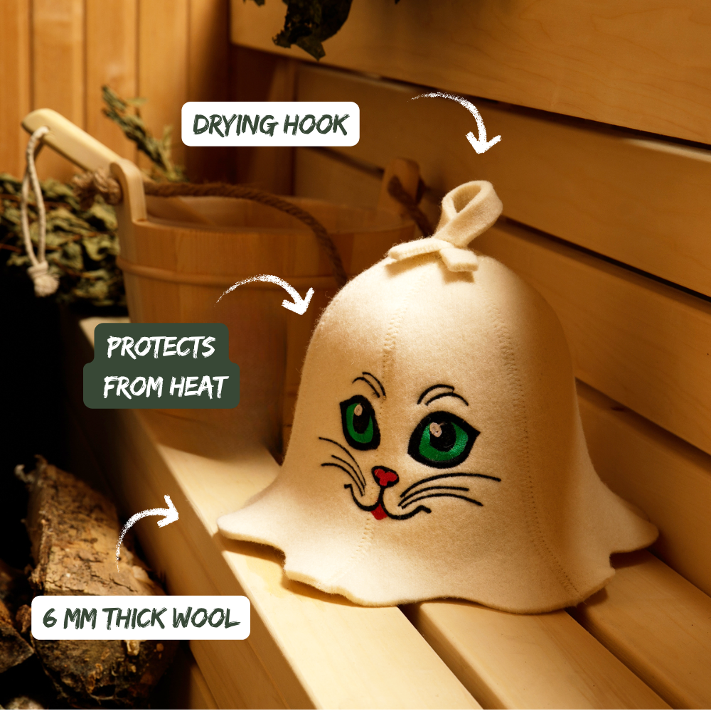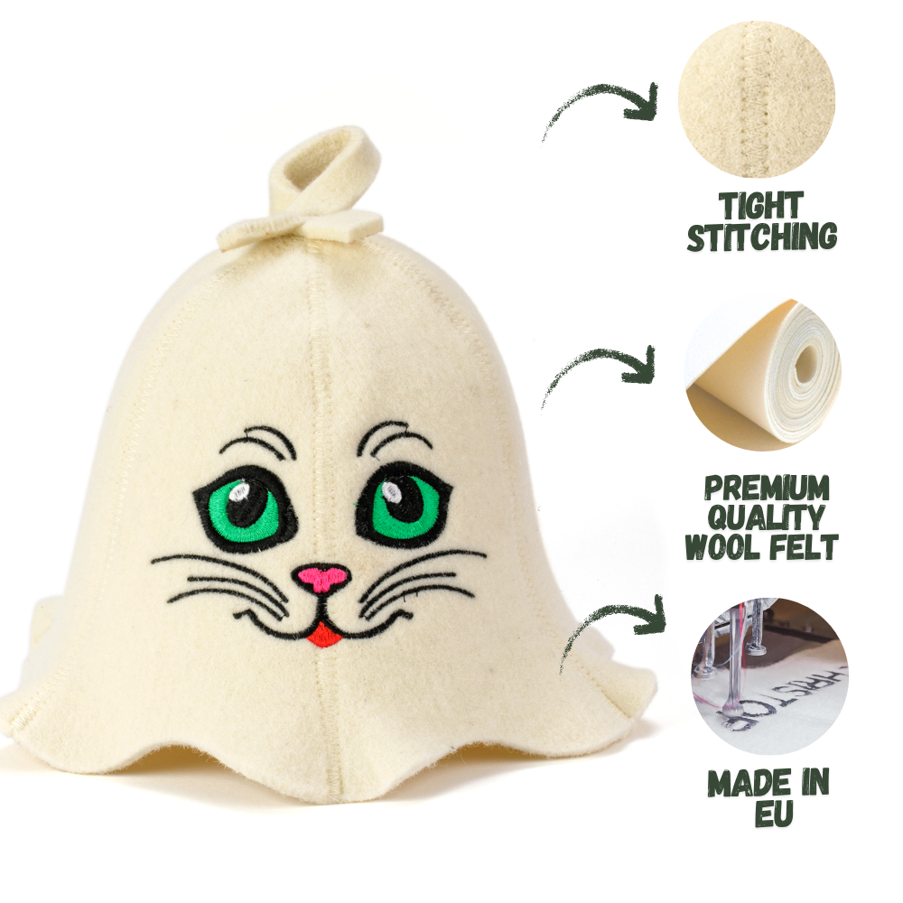Sauna Hat ‘Sauna Kitten’ 100% Wool