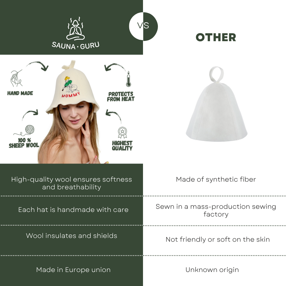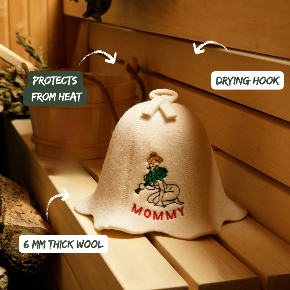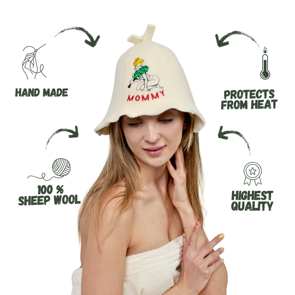 Sauna Hat ‘Sauna Mommy’ 100% Wool