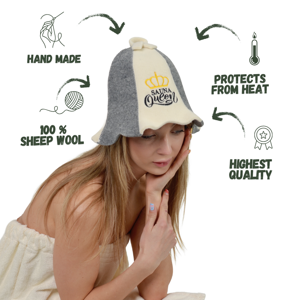 Sauna Hat 'Sauna Queen', 100% Wool - Royal Comfort and Protection in the Sauna