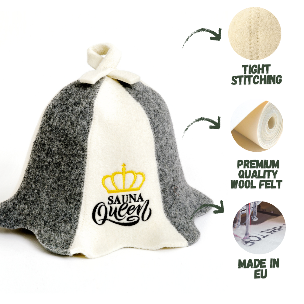 - Royal Design: The hat features an embroidered 'Sauna Queen' inscription, emphasizing your uniqueness and royal attitude towards the sauna.