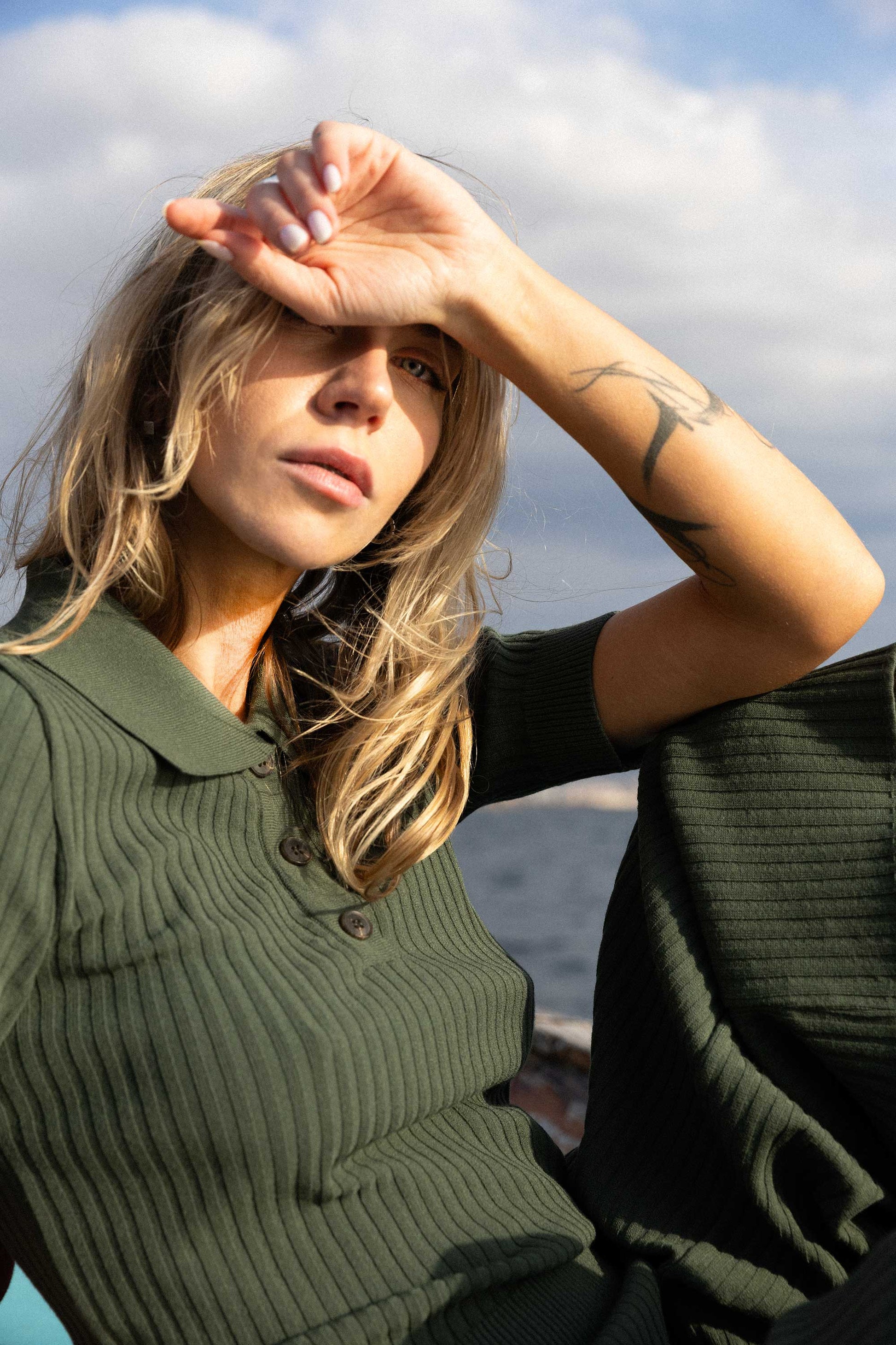 Madonna polo top is where understated elegance meets everyday ease. It’s designed in a refined rib structure featuring short sleeves and a sleek polo collar with buttons.