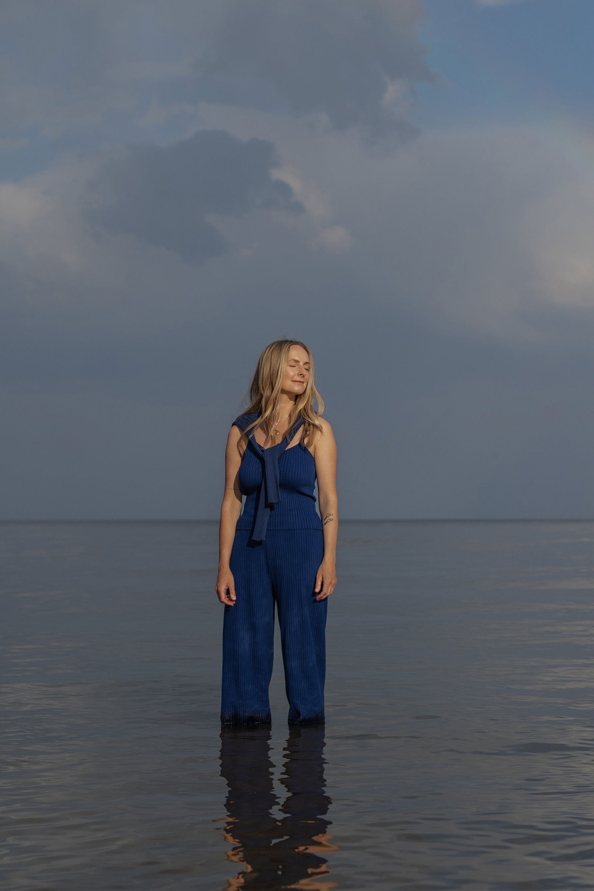 Vera pants are ribbed for tactility and cut in a relaxed wide-leg shape. They sit on the waist with an adjustable elastic band ensuring a personalized fit. Yes, just like in children's clothes! It worked great for our clients. We tried them on on a bunch of our friends with different body shapes and sizes - they all agreed the fit was just perfect to adapt even during pregnancy!