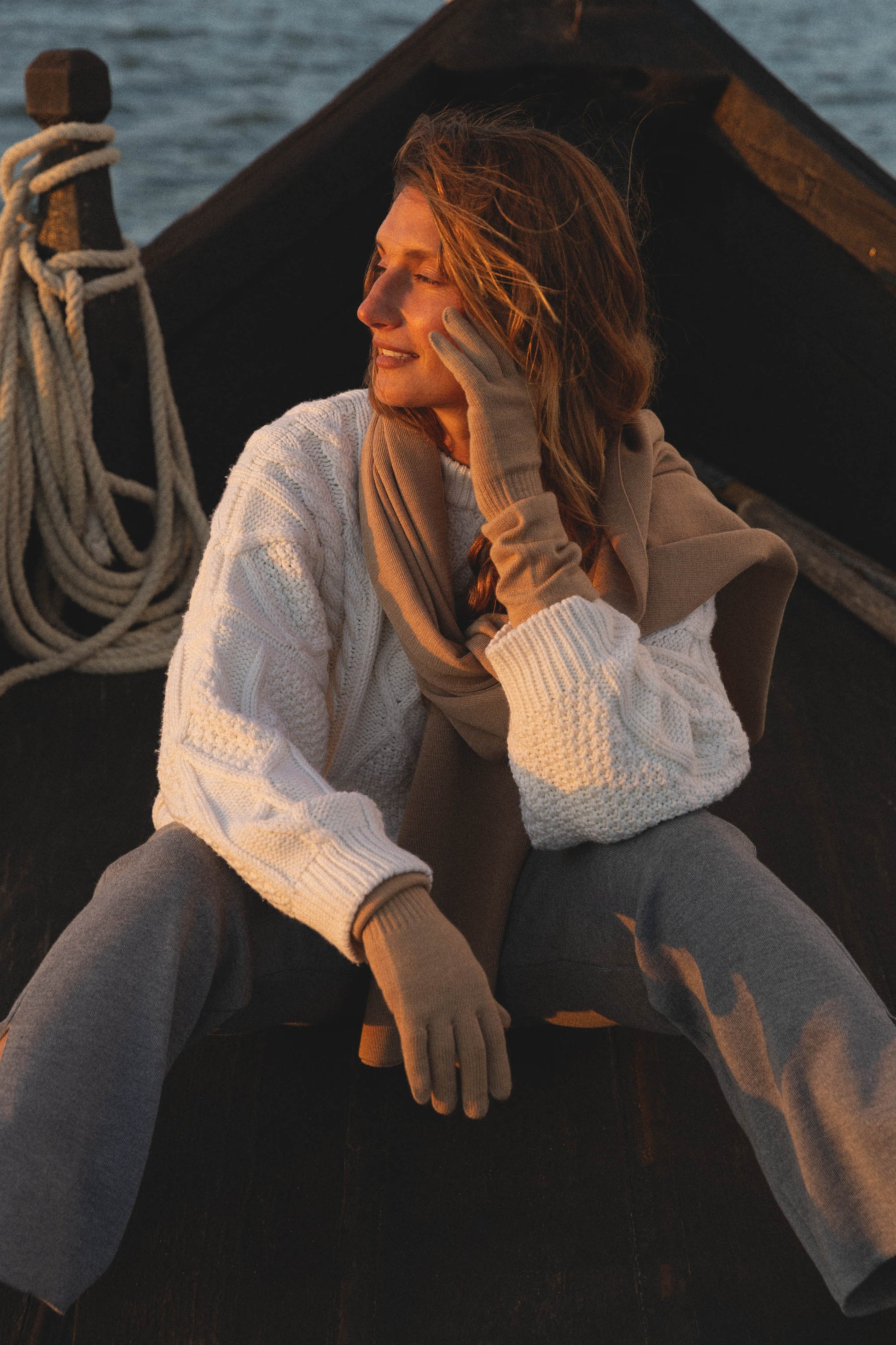 When the temperature drops, keeping your hands warm is essential. The Via gloves are knitted from 100% RWS-certified extra fine merino wool, offering a soft, cozy feel. Their extended, chic length not only adds style but also helps lock in warmth.