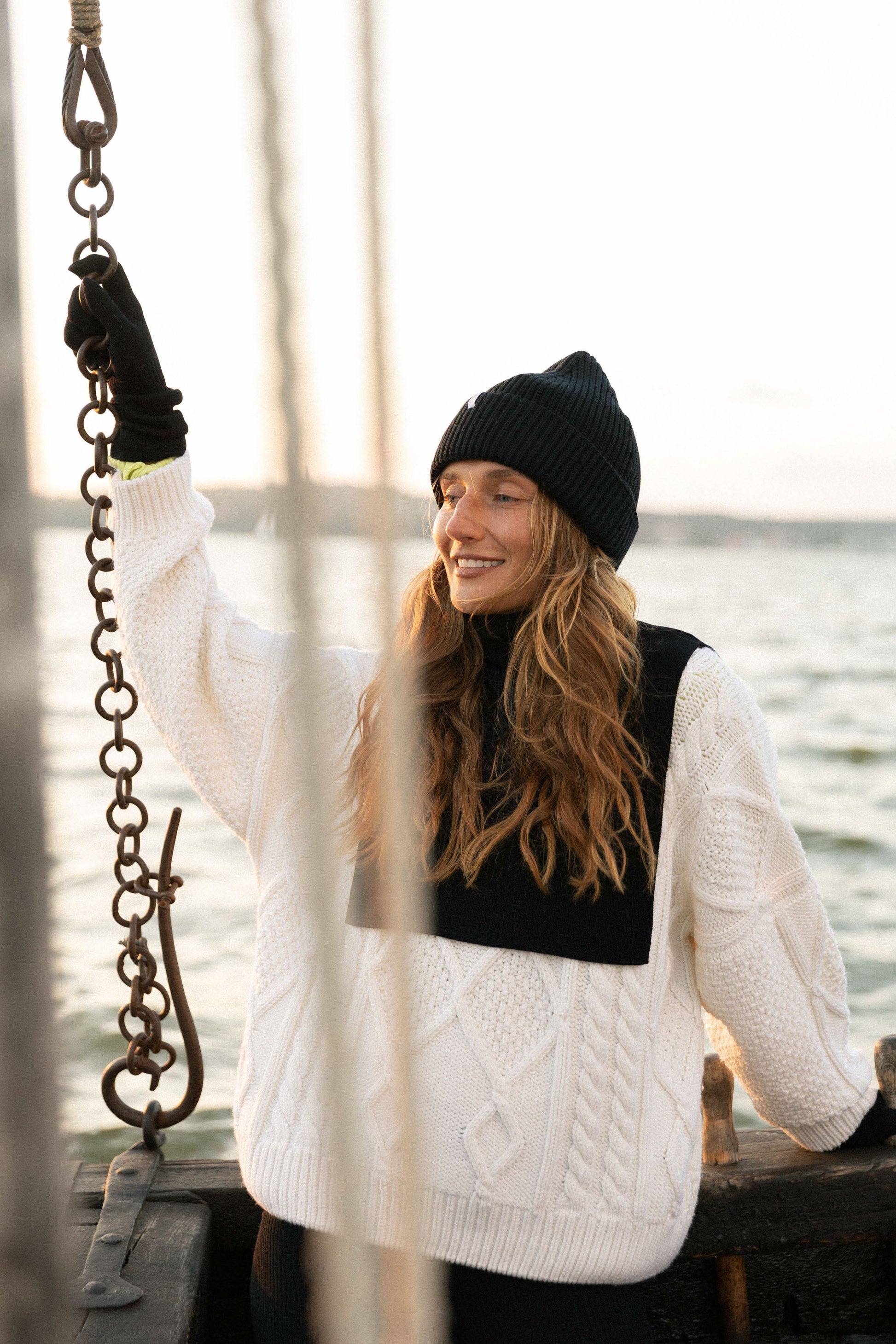 When the temperature drops, keeping your hands warm is essential. The Via gloves are knitted from 100% RWS-certified extra fine merino wool, offering a soft, cozy feel. Their extended, chic length not only adds style but also helps lock in warmth.