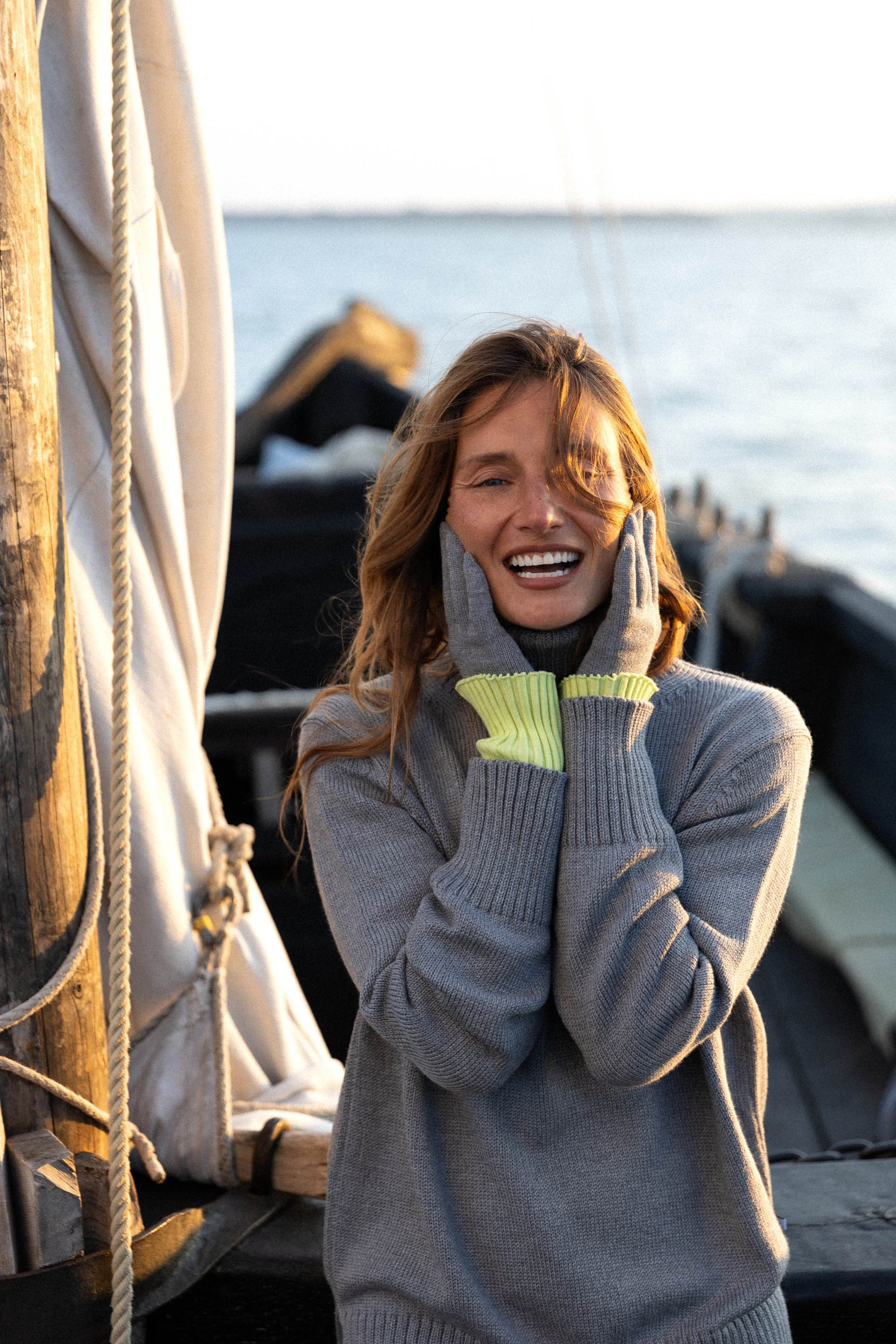 When the temperature drops, keeping your hands warm is essential. The Via gloves are knitted from 100% RWS-certified extra fine merino wool, offering a soft, cozy feel. Their extended, chic length not only adds style but also helps lock in warmth.