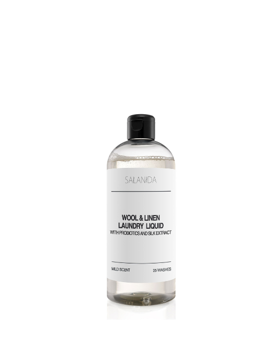 SALANIDA Wool & Linen Laundry Liquid is designed for the special care and protection of your clothes and laundry. Free from harsh chemicals, our laundry liquid is kind to the environment and your skin. Made from high-quality natural, plant-based ingredients and enriched with probiotics and natural silk extract, it protects the fabric and safeguards human skin from irritation. The hypoallergenic formula ensures it is suitable for even the most sensitive skin types, providing a worry-free laundry experience.